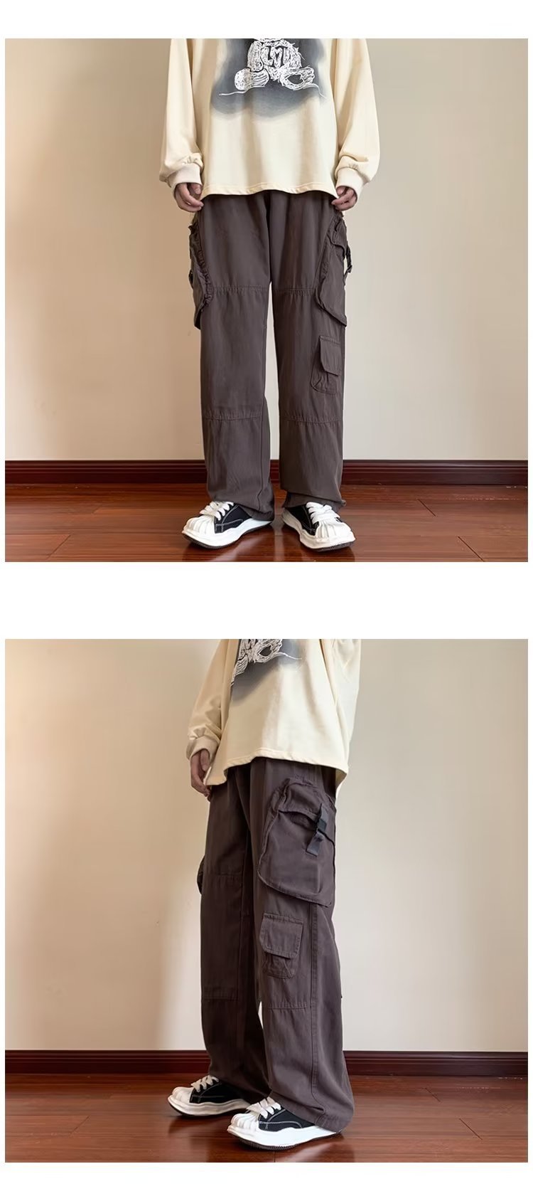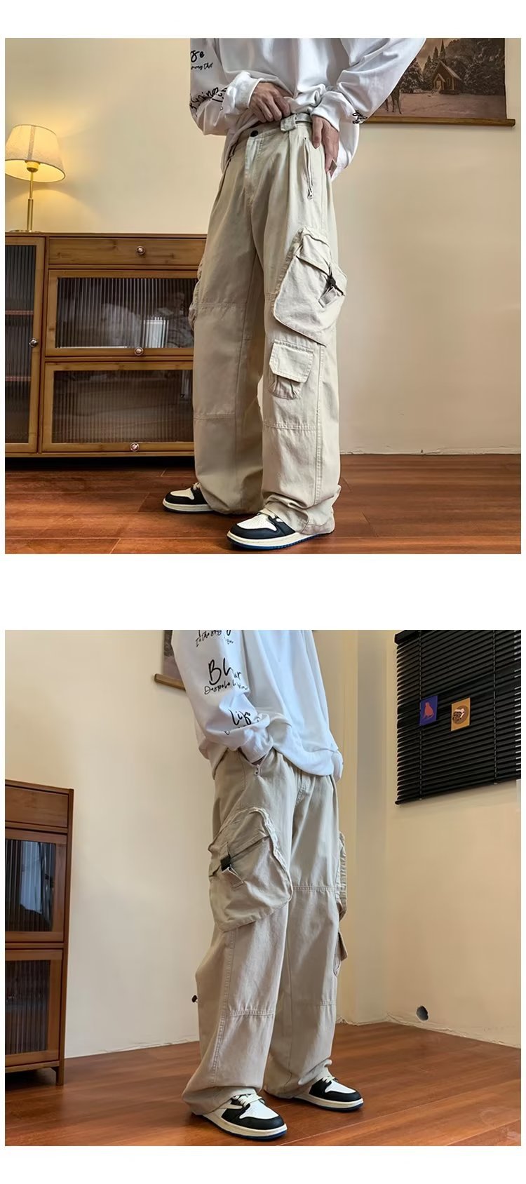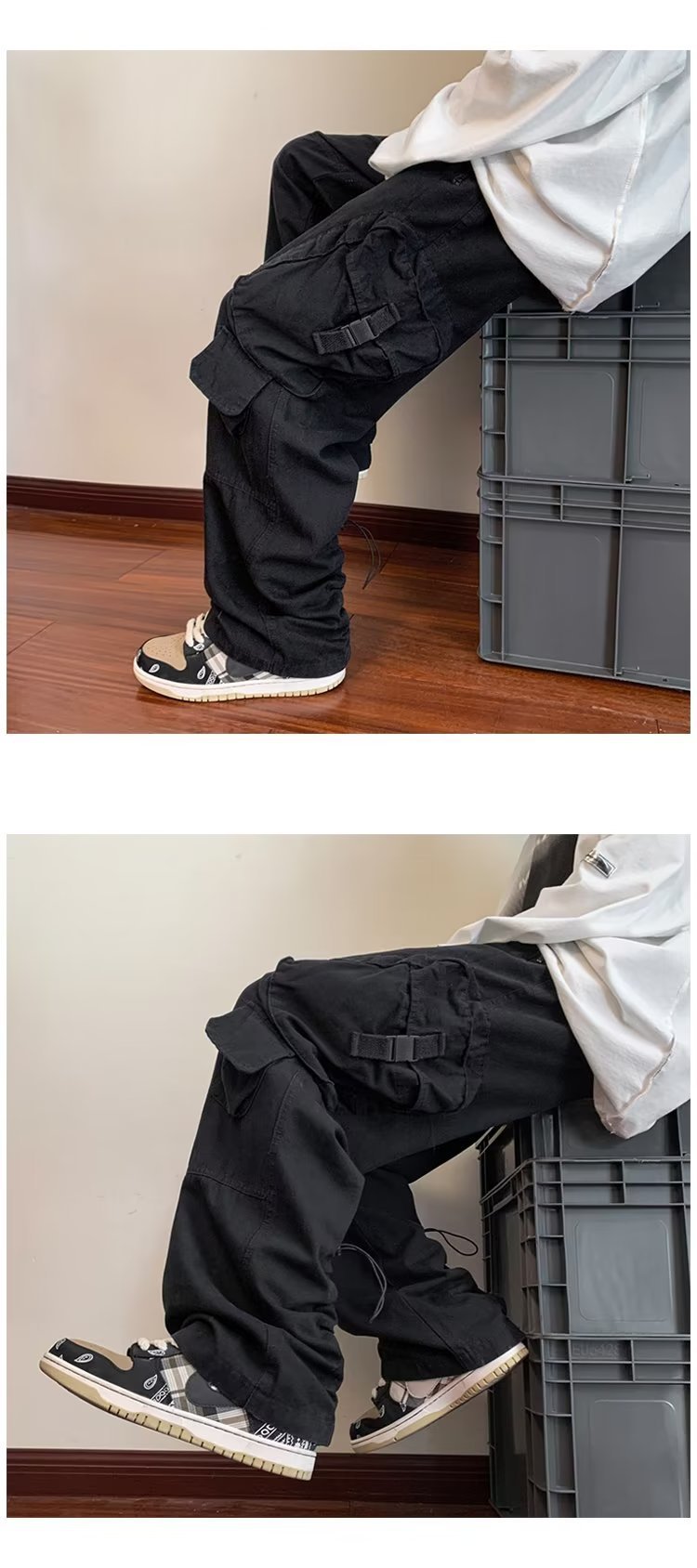 아메리칸 레트로 하이 스트리트 크록 팬츠 남성용 스트레이트 와이드 레그 캐주얼 바지 2023 새로운 패션 트렌디 한 바지스토어 가기