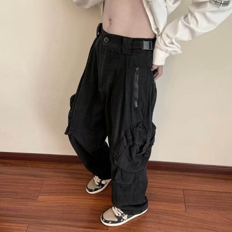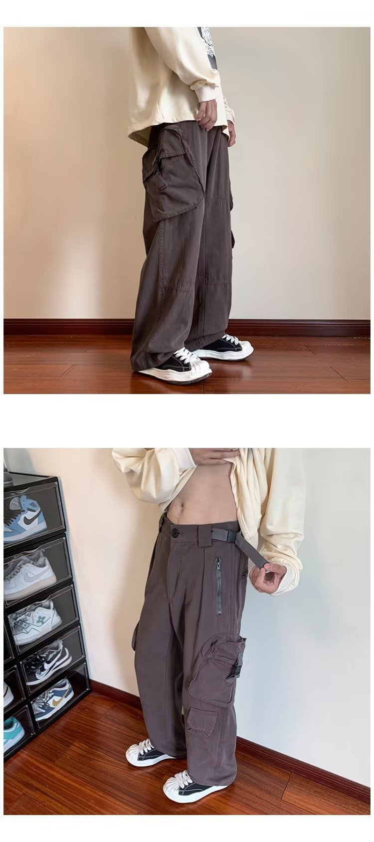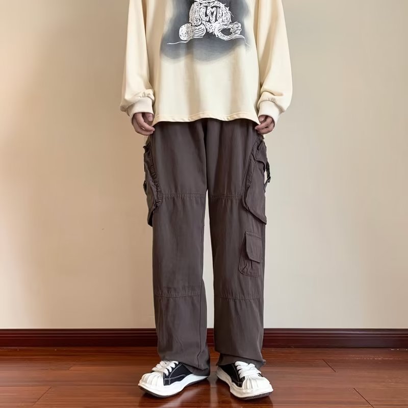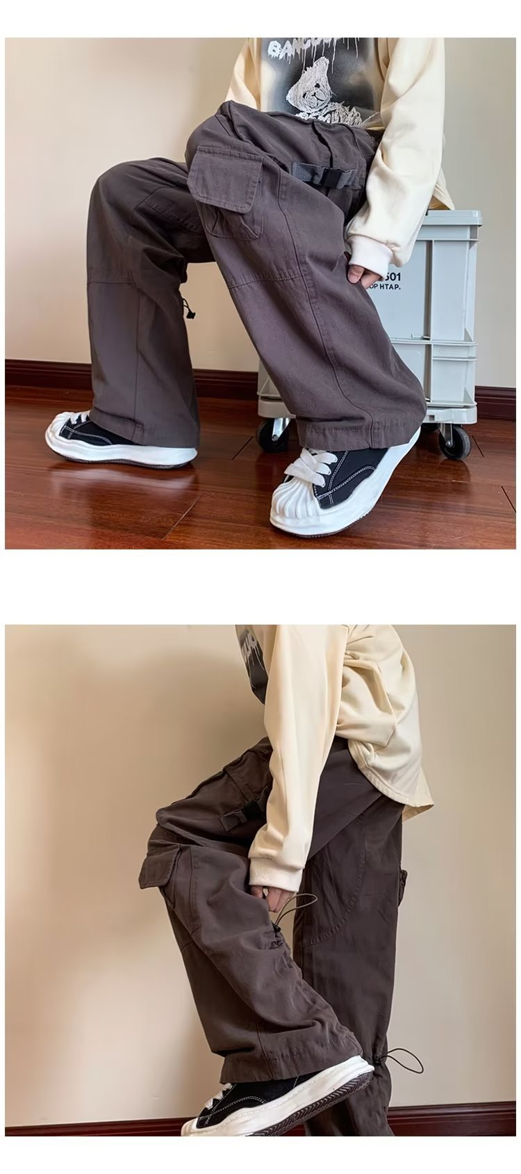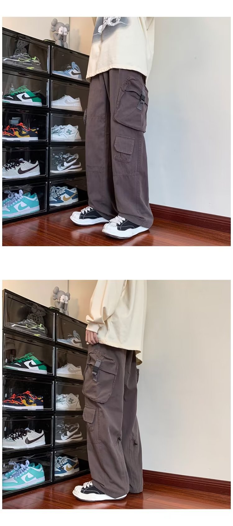 아메리칸 레트로 하이 스트리트 크록 팬츠 남성용 스트레이트 와이드 레그 캐주얼 바지 2023 새로운 패션 트렌디 한 바지스토어 가기