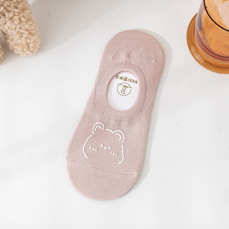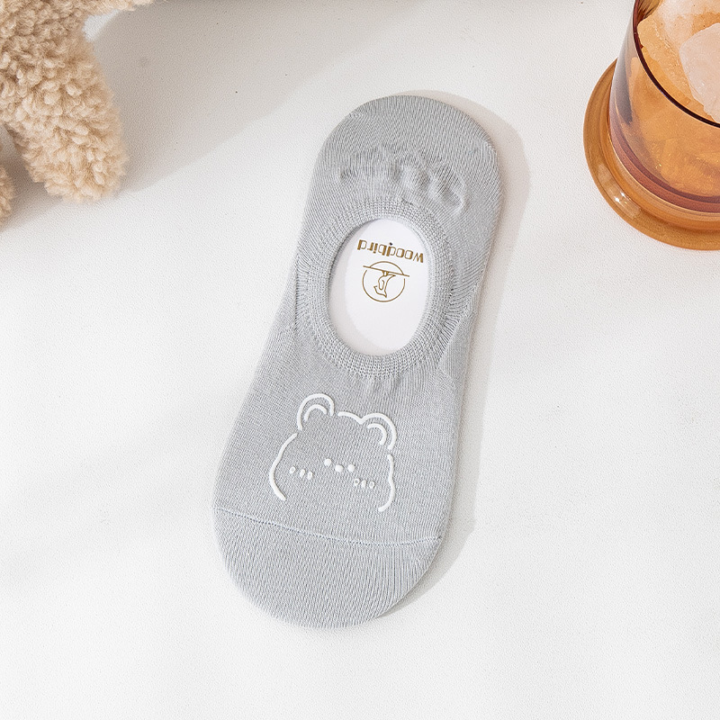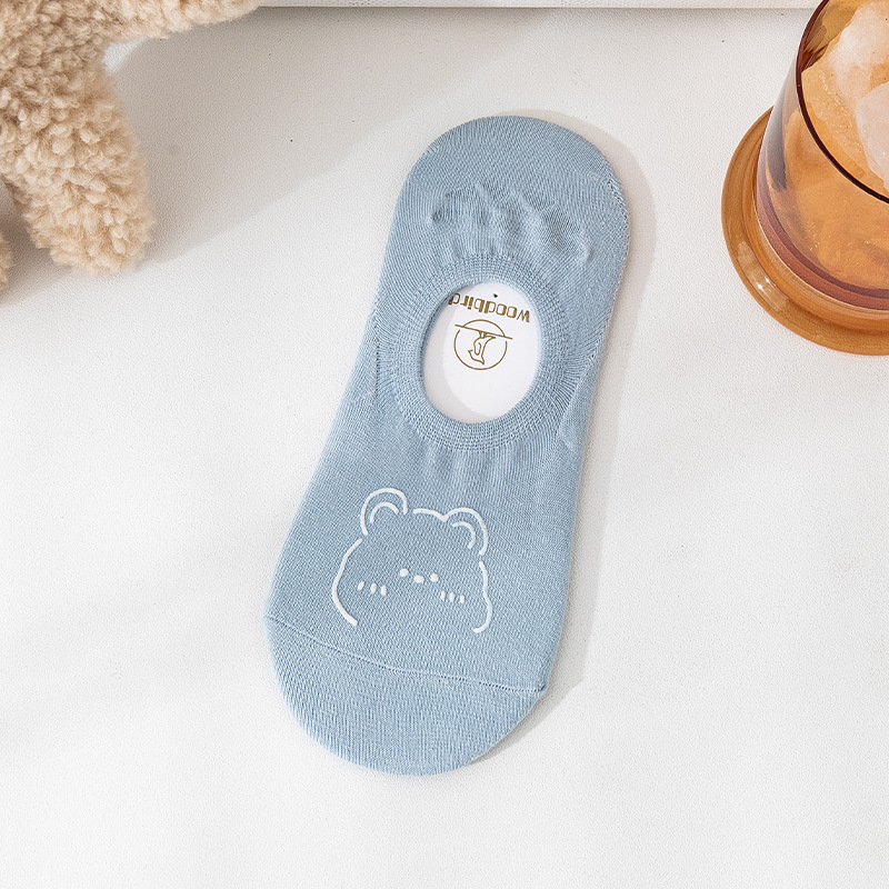 보이지 않는 양말 어린이 여름 얇은 얕은 입 일본식 귀여운 핫 스탬핑 곰 짧은 양말 실리콘 미끄럼 방지 떨어지는 뒤꿈치 보트 양말