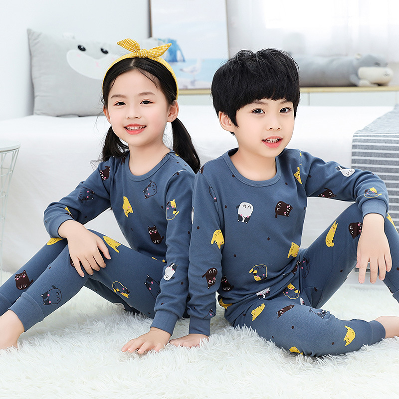 새로운 가을과 겨울 아동복 아동 가을 의류 가을 바지 면 아동 기본 속옷 세트 만화 홈 베이스 셔츠스토어 가기