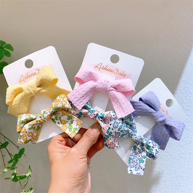 어린이 신선한 꽃 머리핀 어린 소녀 격자 무늬 활 머리핀 머리 장식 소녀 앞머리 부러진 머리 옆 클립스토어 가기