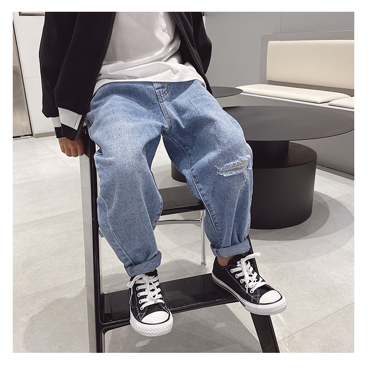 어린이 찢어진 청바지 2023 새로운 소년 바지 봄과 가을 캐주얼 느슨한 유행 아동복 큰 바지스토어 가기