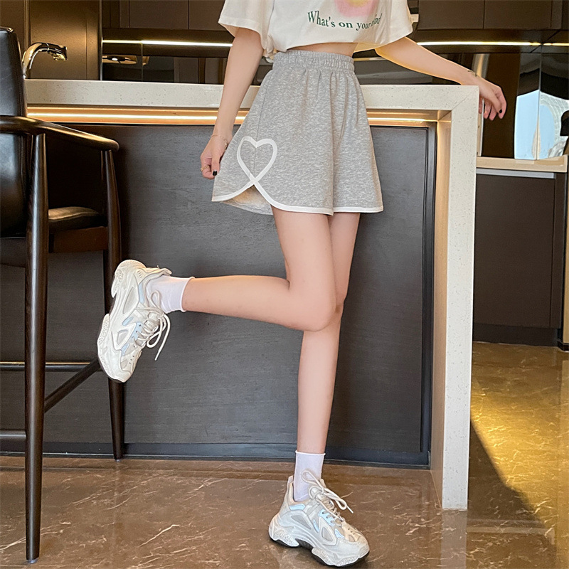핫 걸스 스포츠 반바지 여성의 여름 한국 스타일 2023 새로운 하이 웨이스트 슬리밍 디자인 감각 사랑 캐주얼 바지 핫 팬츠