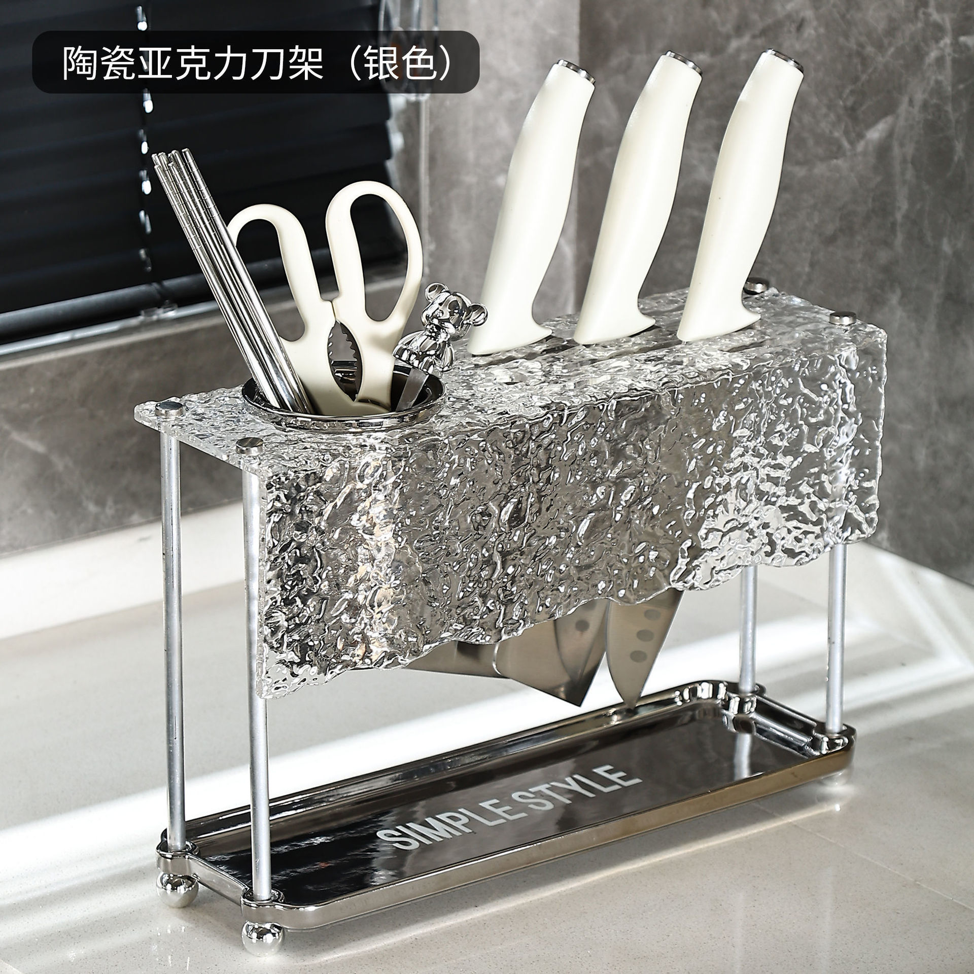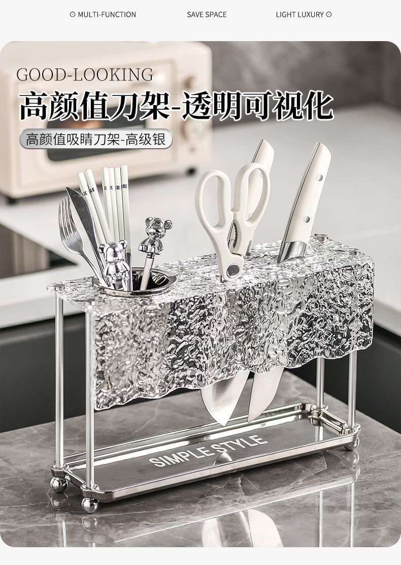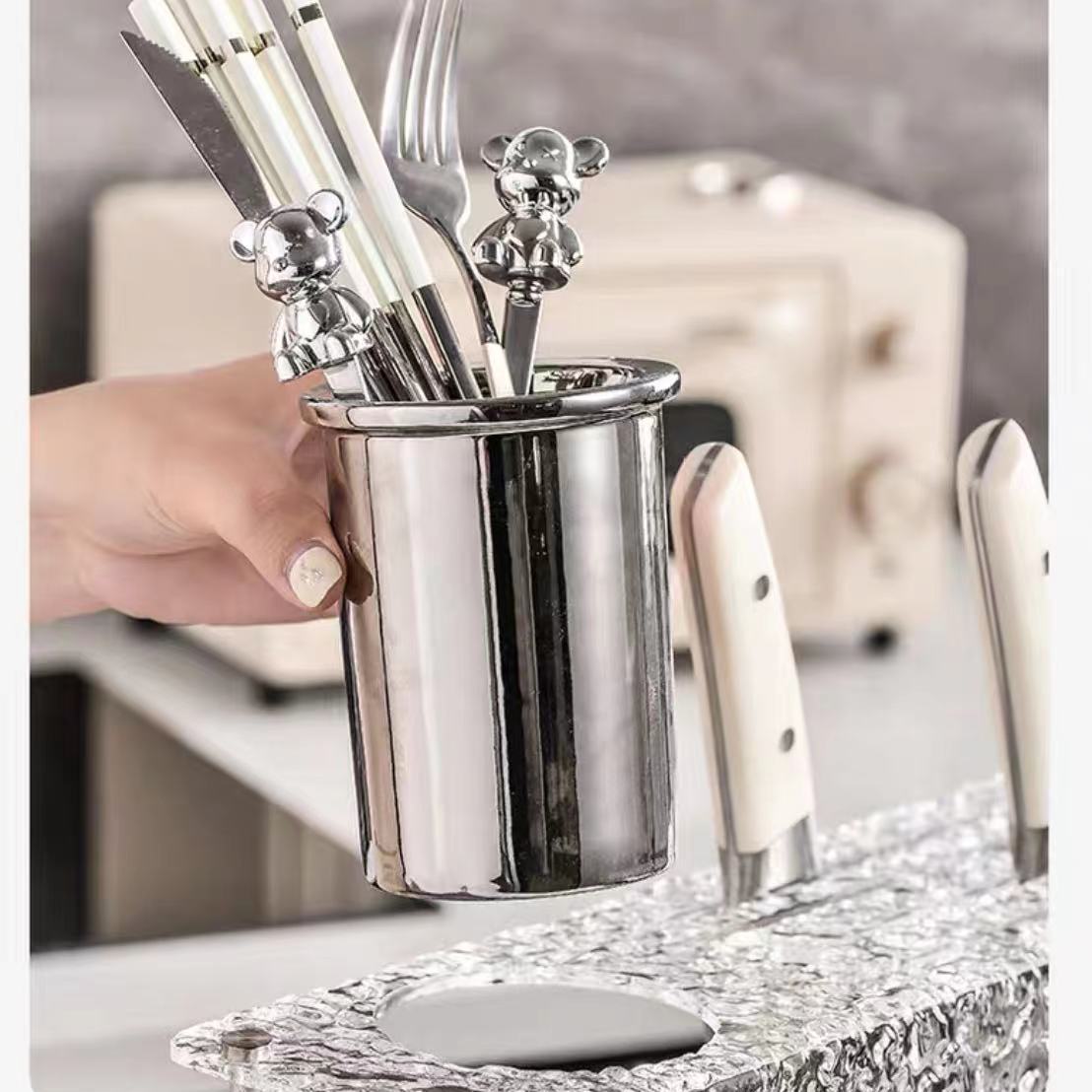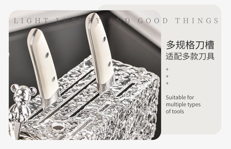 • 고가 나이프 젓가락 홀더-해머 패턴-실버