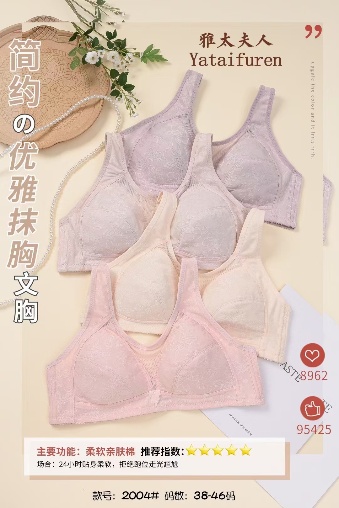 엄마의 속옷 중년 및 노인 여성용 조끼 스타일 브래지어 중년 여성용 순면 여름 반지 프리 브래지어 플러스 사이즈스토어 가기