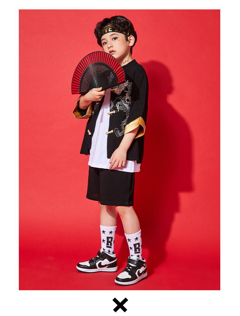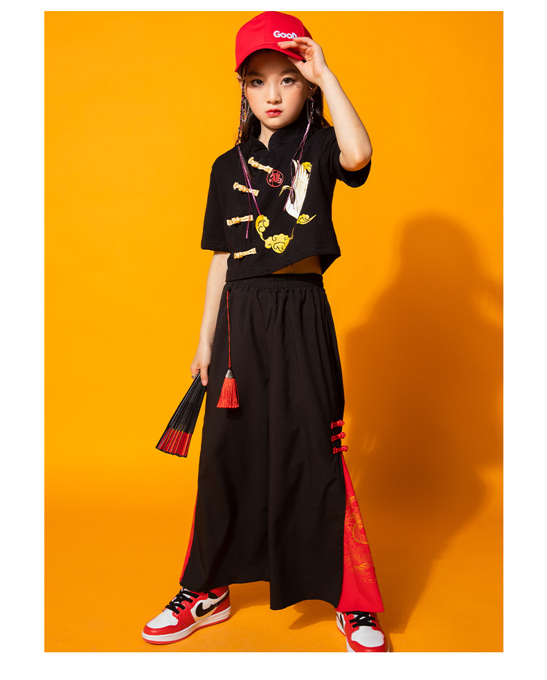 어린이 치어 리더 공연복 소녀 탕 세트 한푸 중국식 공연복 수업 소년 전국 패션 힙합 옷