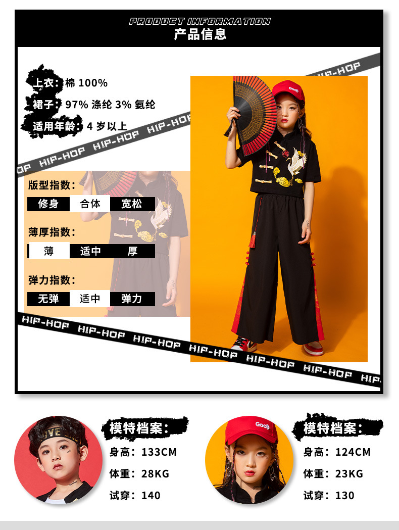 어린이 치어 리더 공연복 소녀 탕 세트 한푸 중국식 공연복 수업 소년 전국 패션 힙합 옷스토어 가기