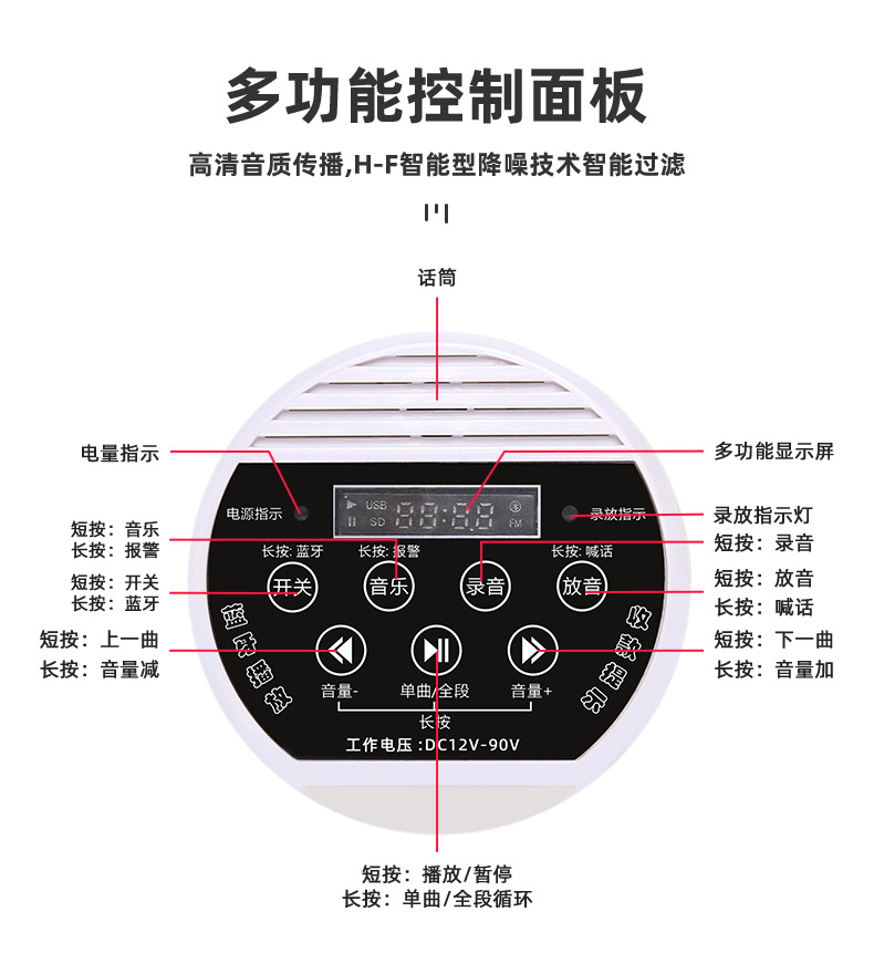 더블 드릴 CA-500HTU 블루투스 확성기 12-90V 차량용 확성기 녹음 고출력 선전 경적