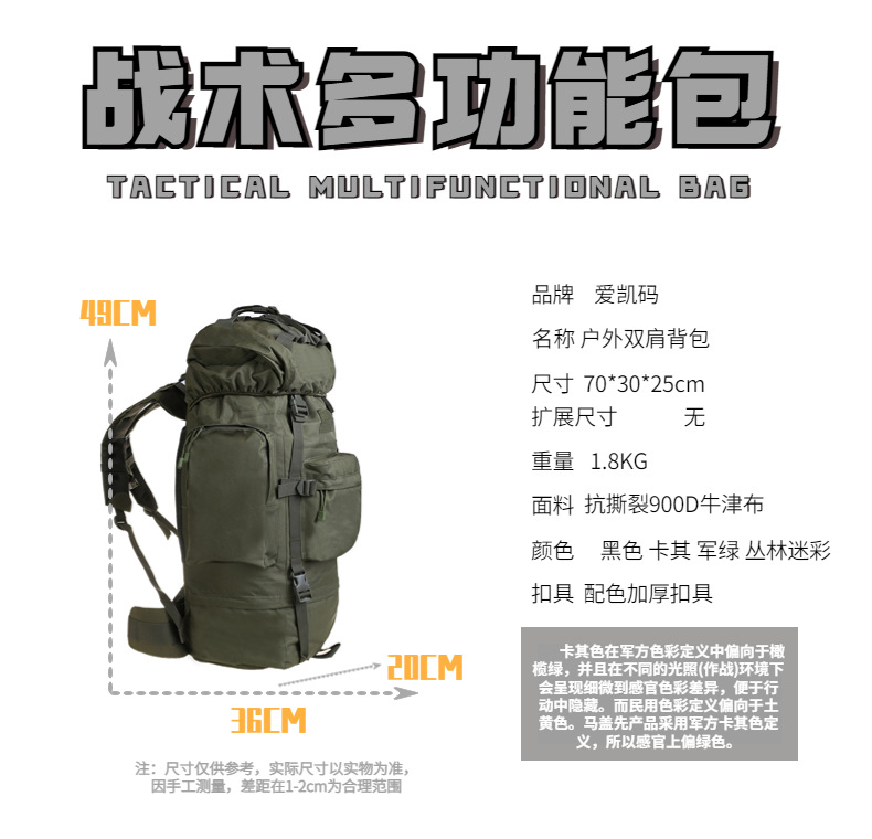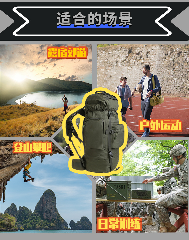 品名:户外战术旅行升级款65L大容量铝架双肩背包