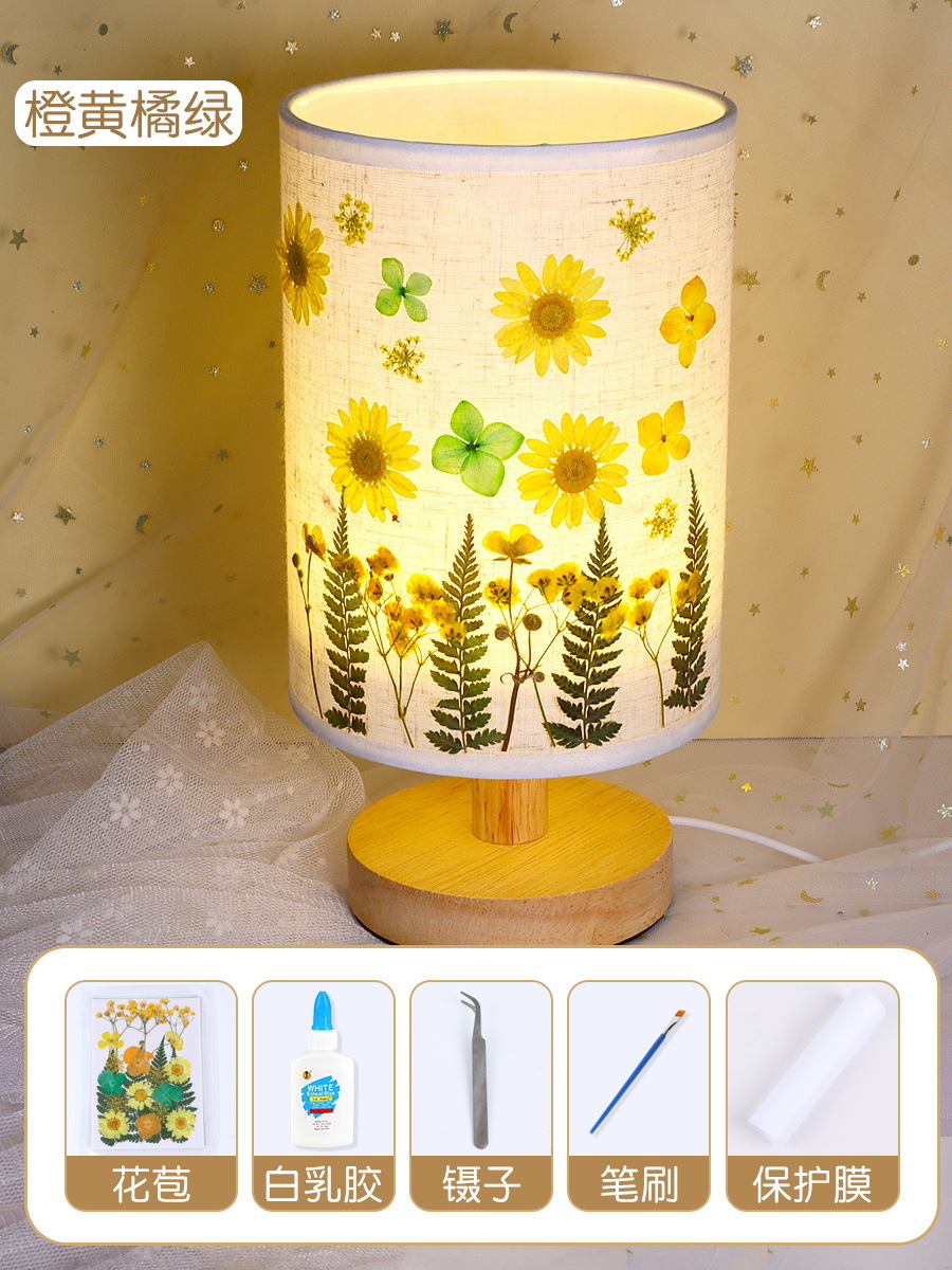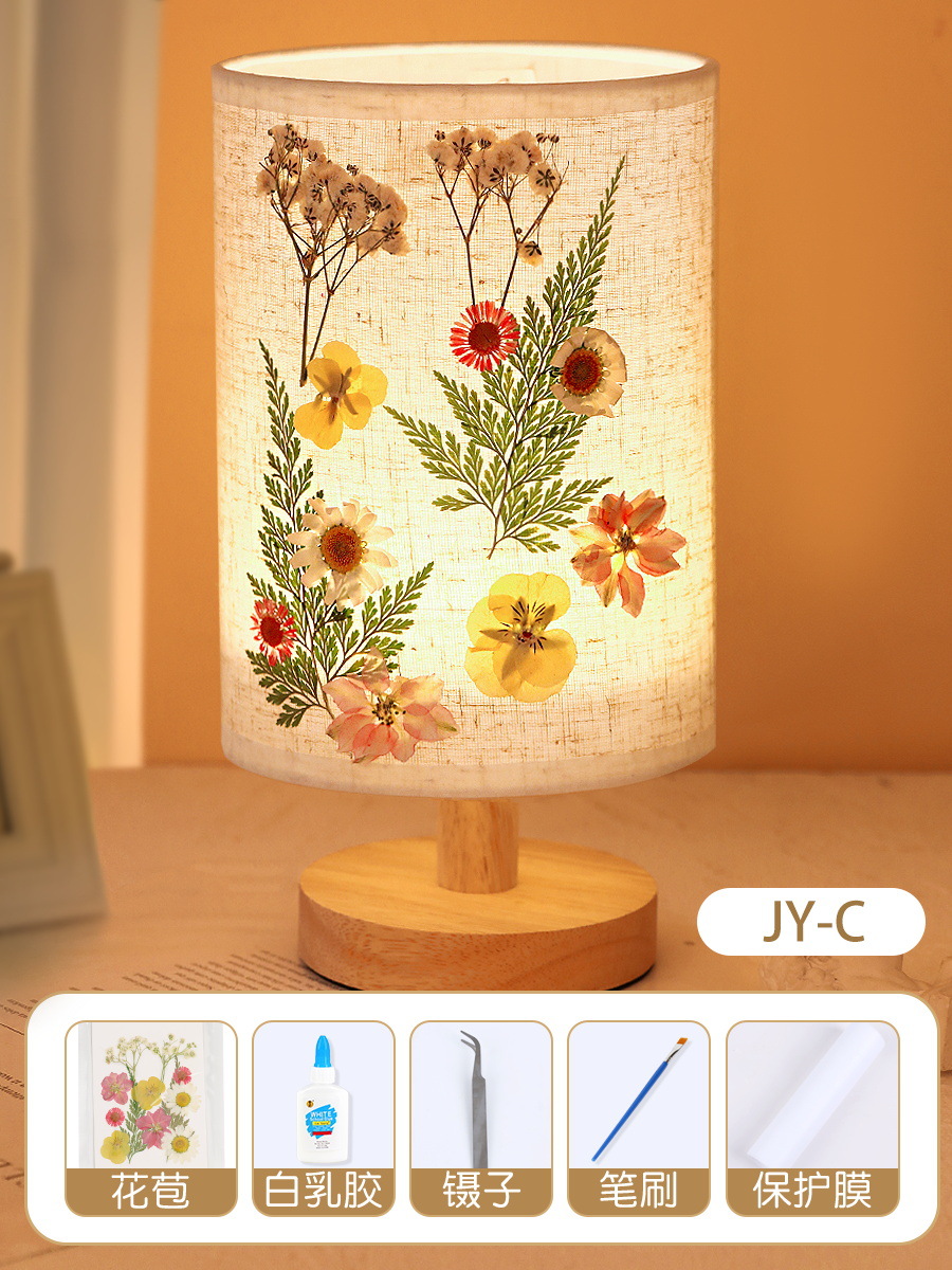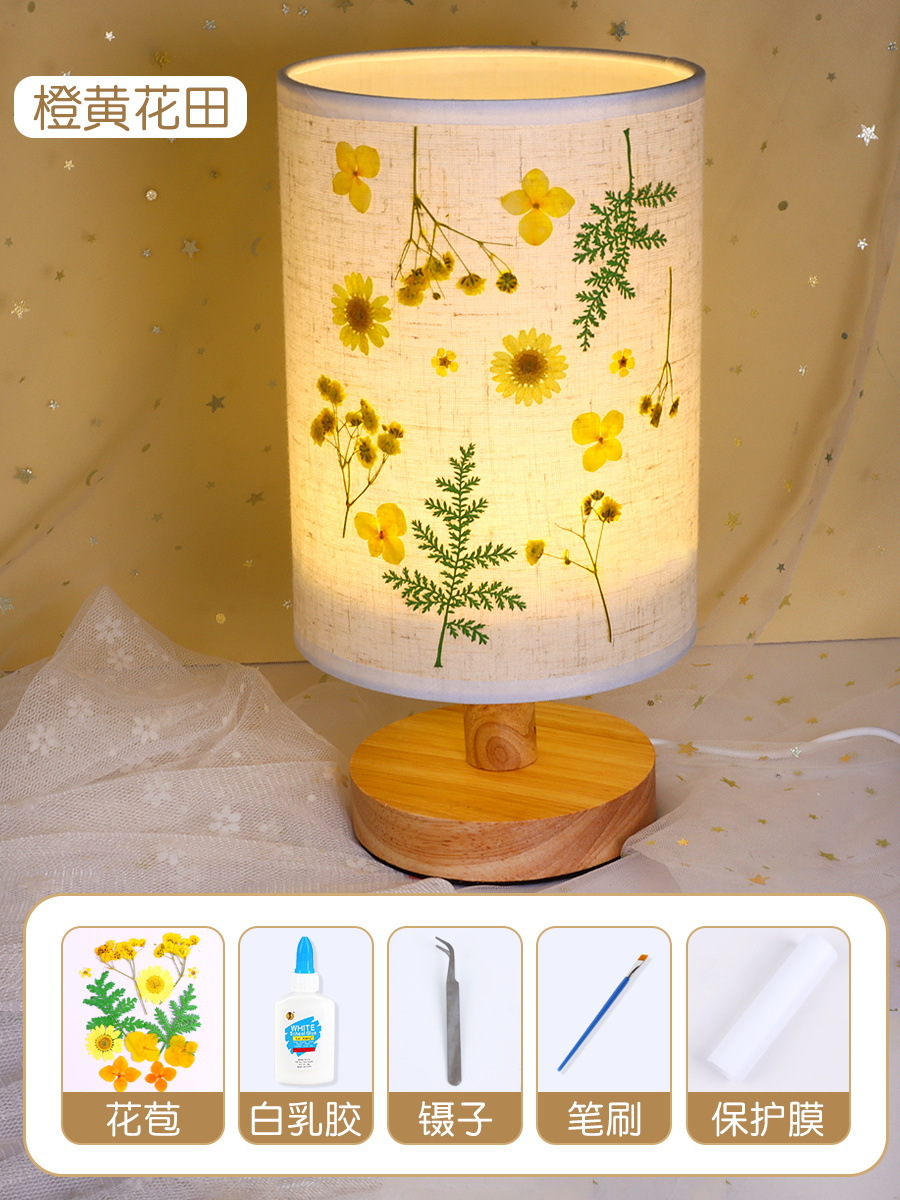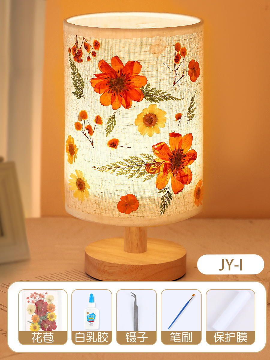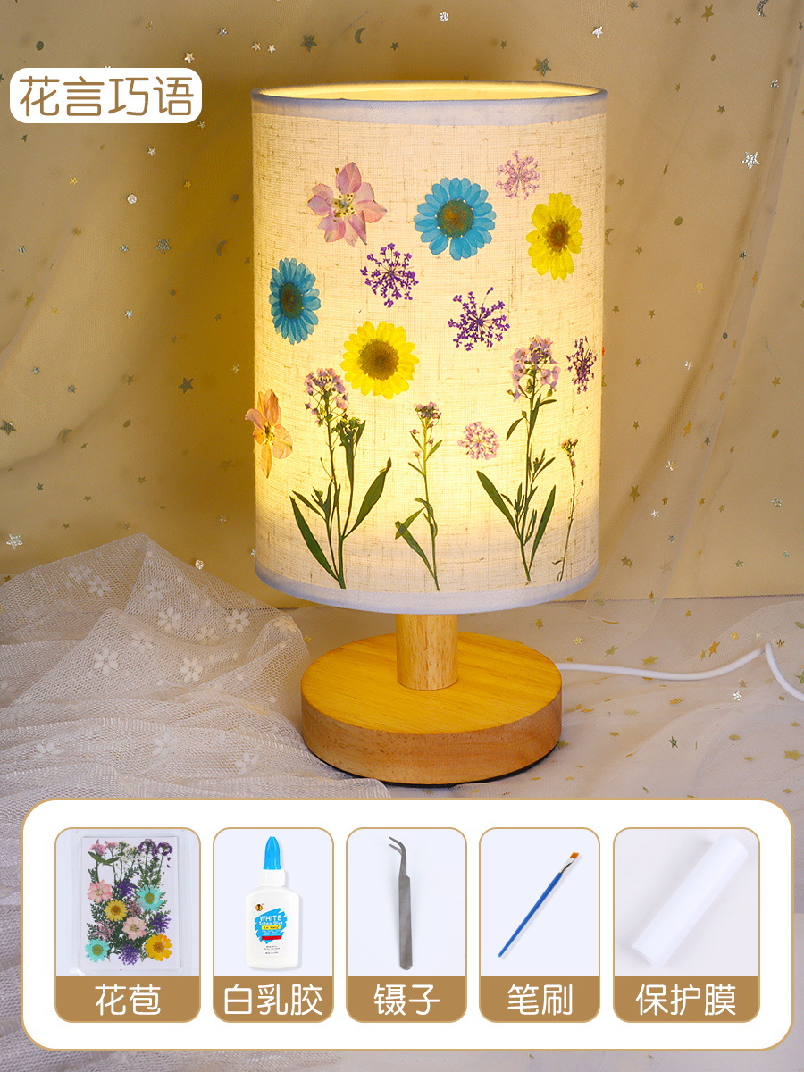 테이블 램프 DIY 재료 어린이 수공예 압화 설날 건조 꽃 식물 팀 빌딩 압화 야간등 선물