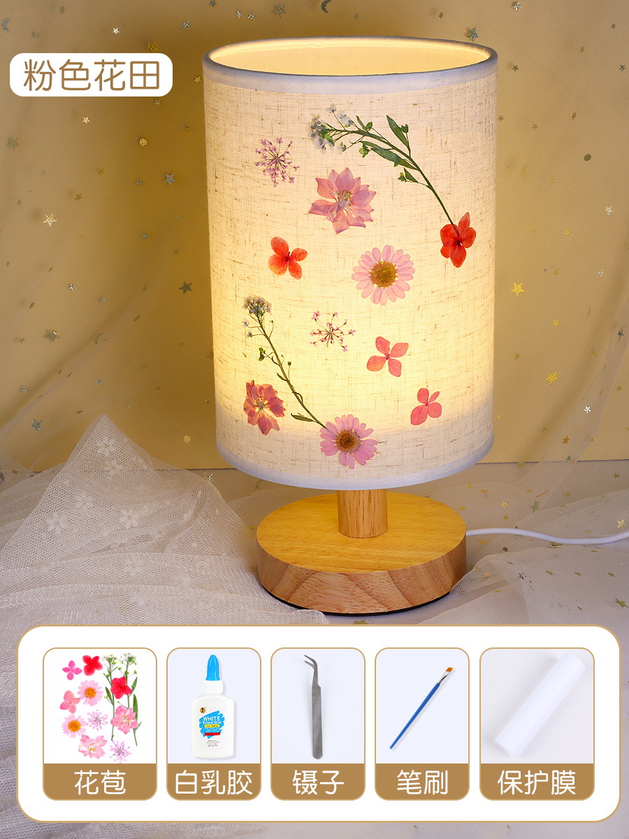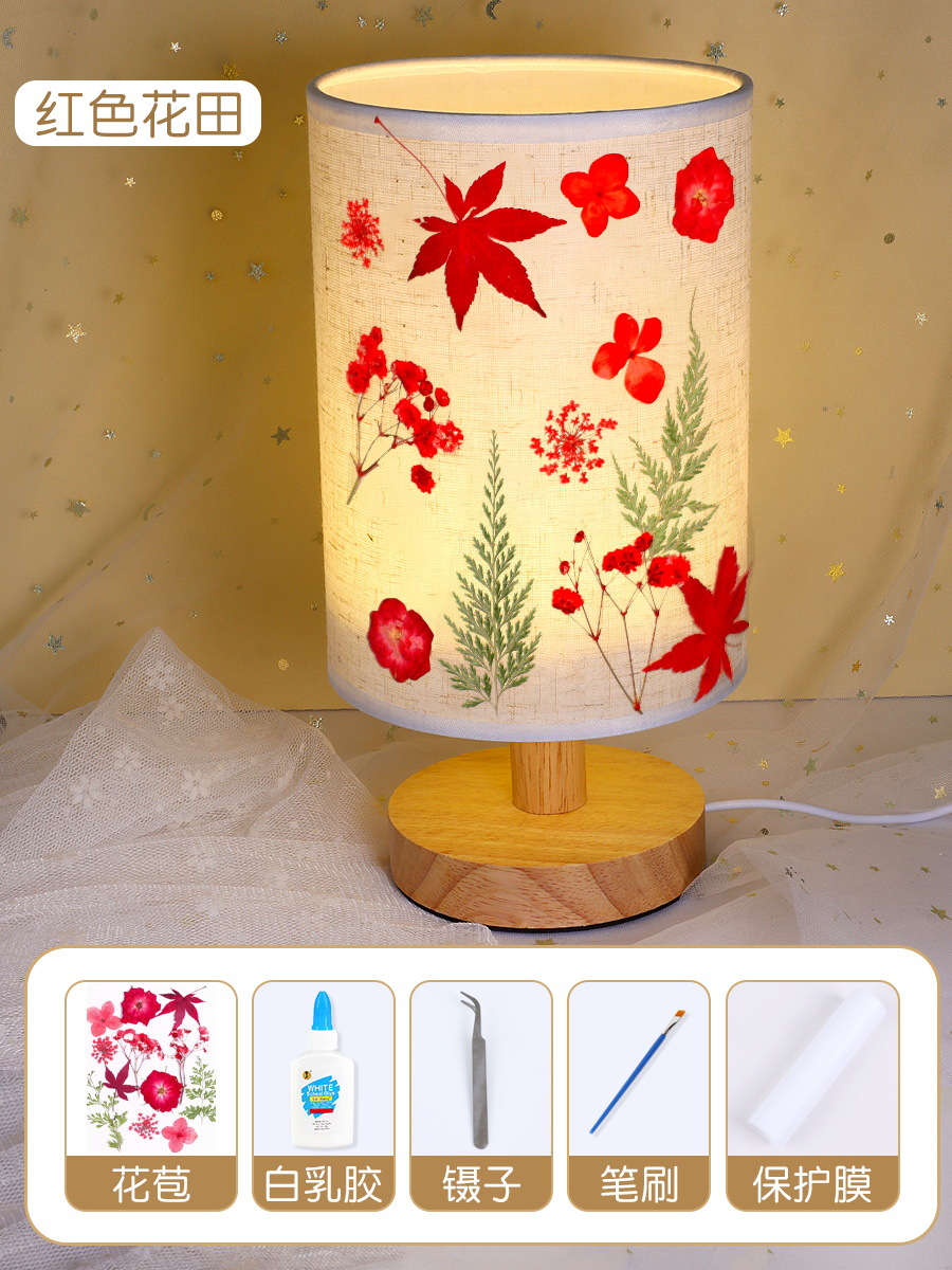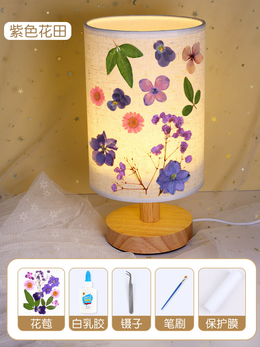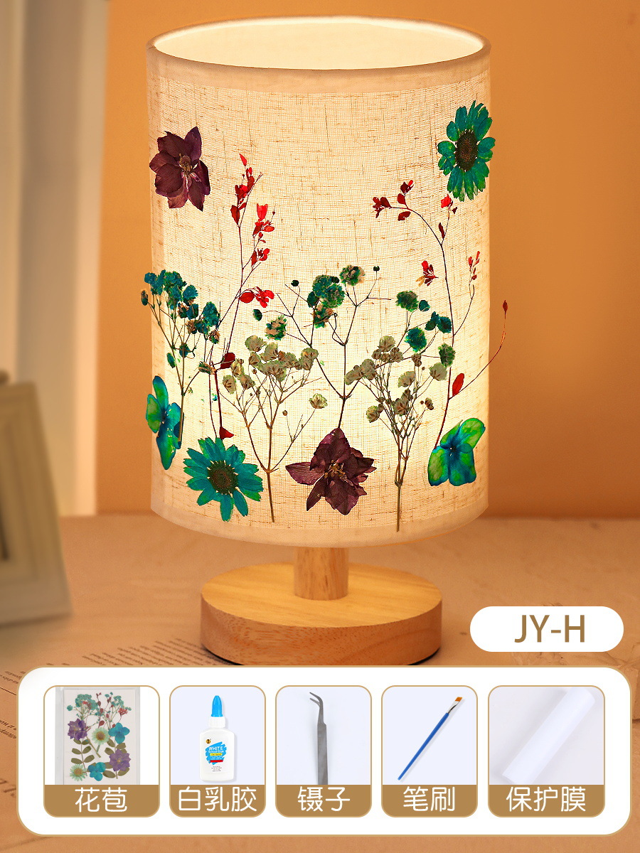 테이블 램프 DIY 재료 어린이 수공예 압화 설날 건조 꽃 식물 팀 빌딩 압화 야간등 선물