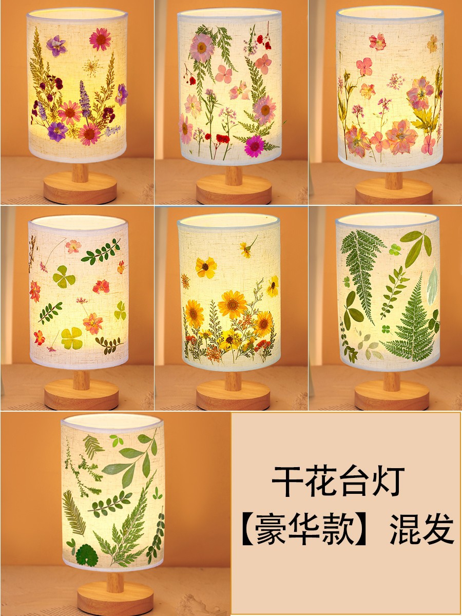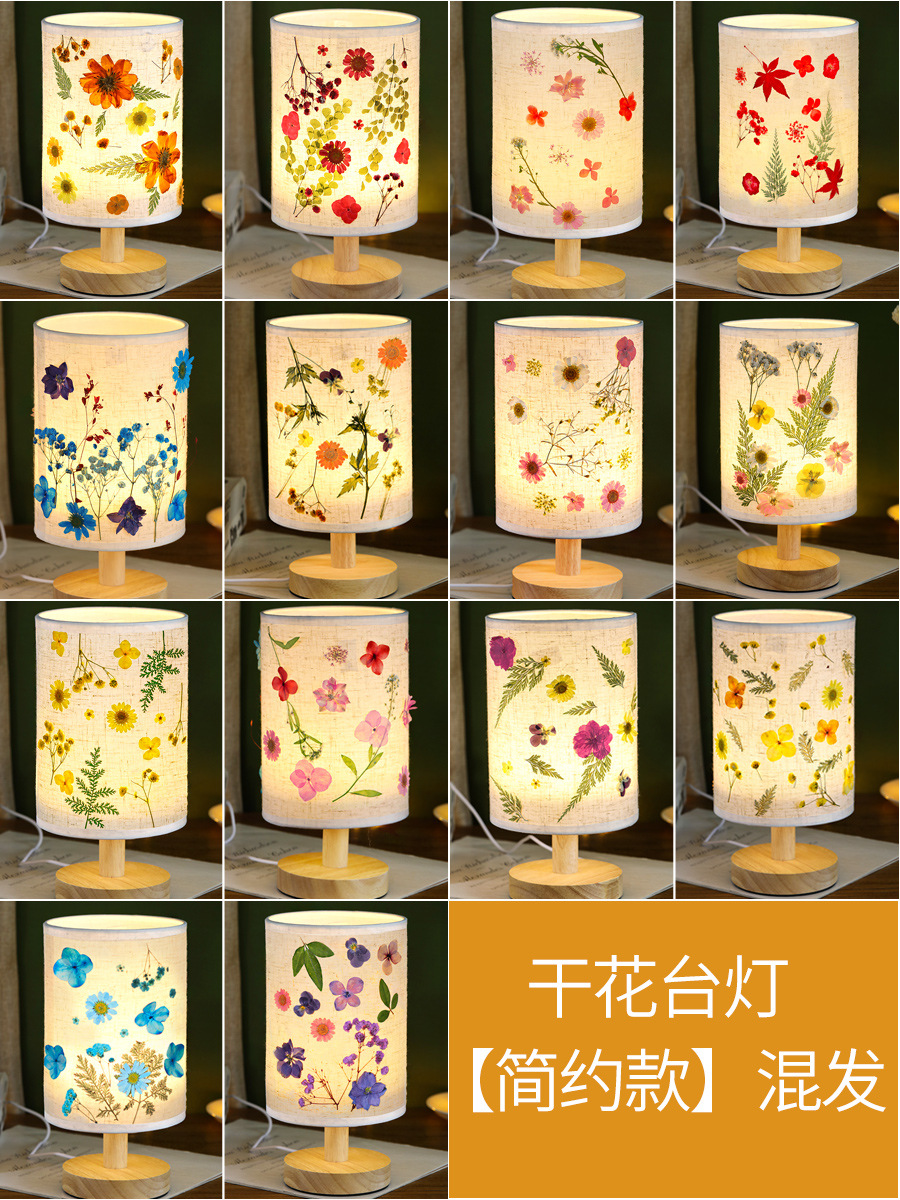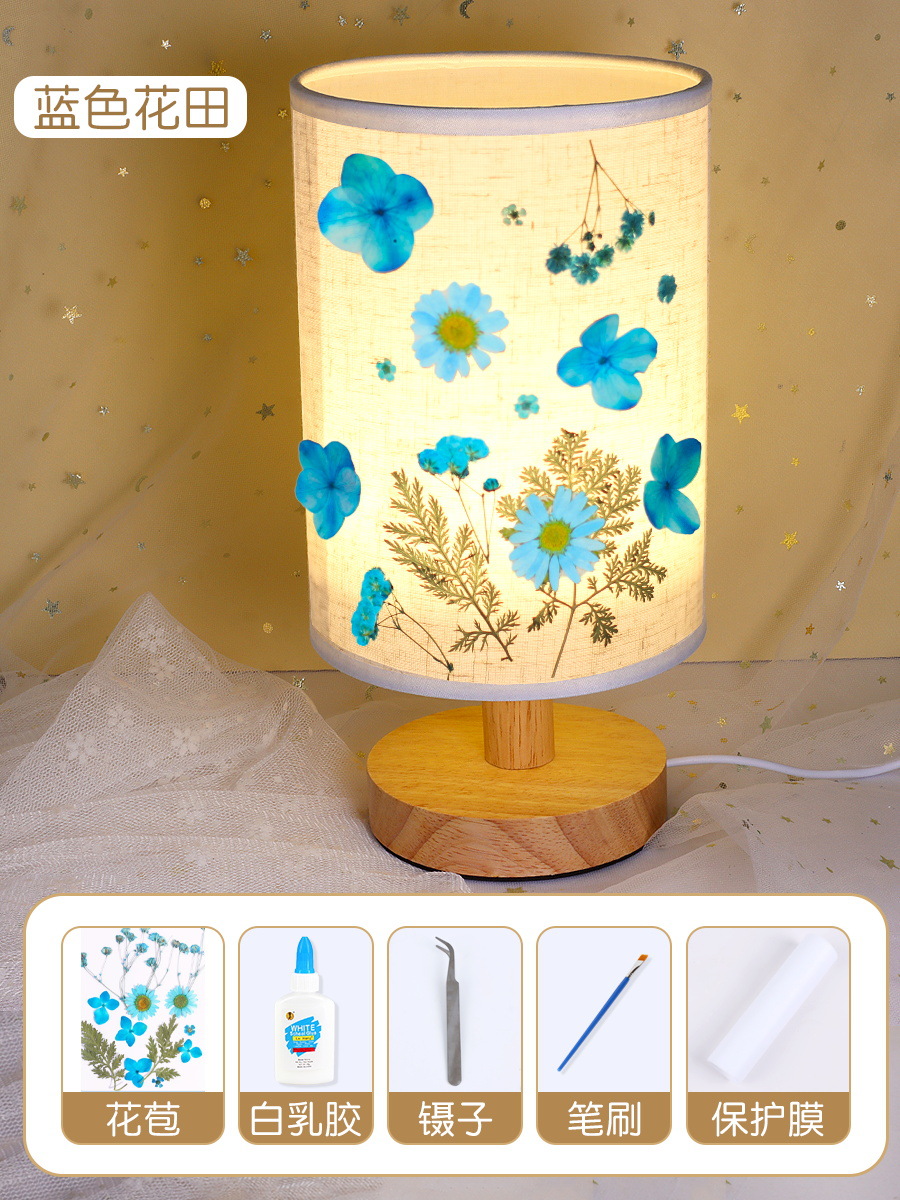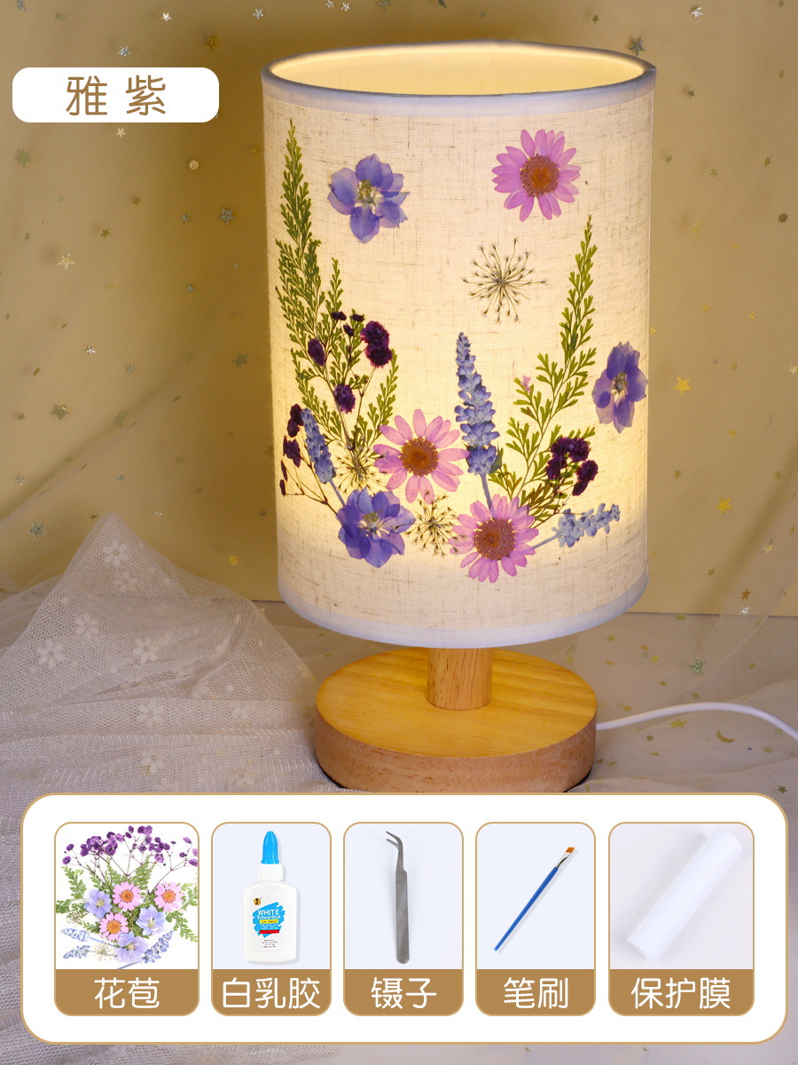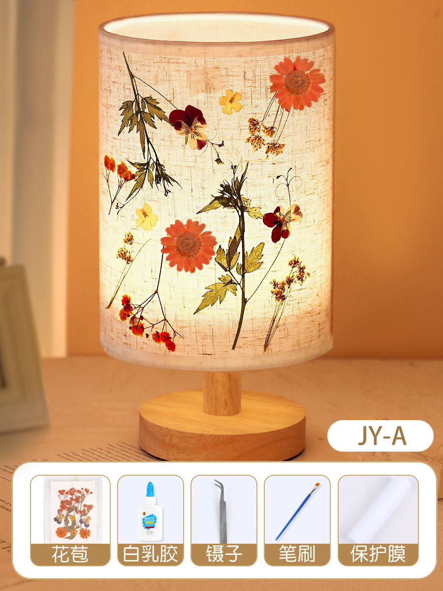 테이블 램프 DIY 재료 어린이 수공예 압화 설날 건조 꽃 식물 팀 빌딩 압화 야간등 선물