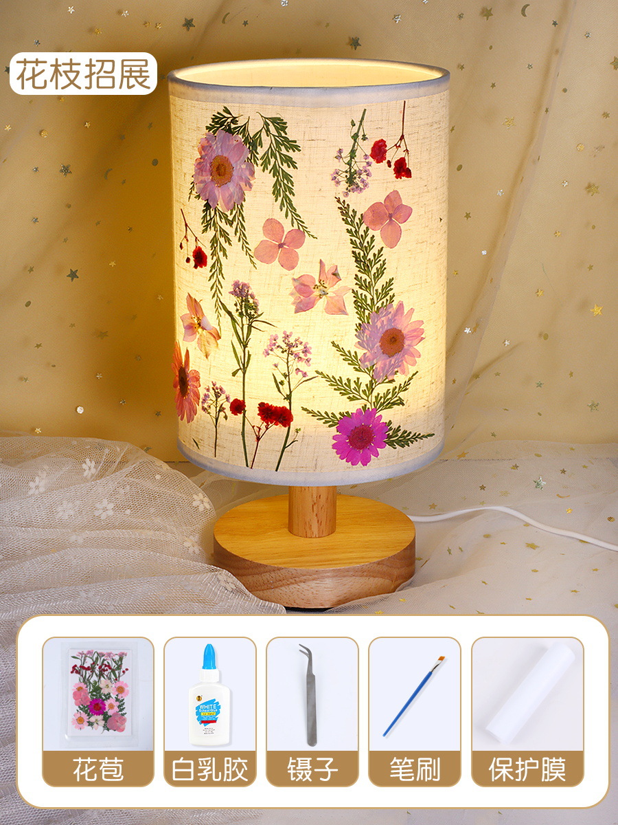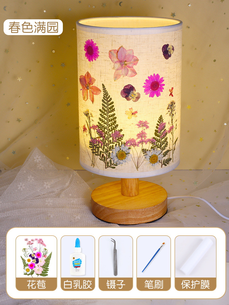 테이블 램프 DIY 재료 어린이 수공예 압화 설날 건조 꽃 식물 팀 빌딩 압화 야간등 선물스토어 가기
