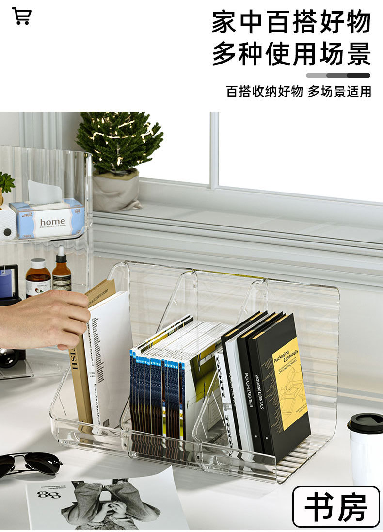 오버플로 구매 데스크탑 보관함 코너 투명 화장품 선반 쌓을 수있는 학생 책상 사무실 삼각대스토어 가기