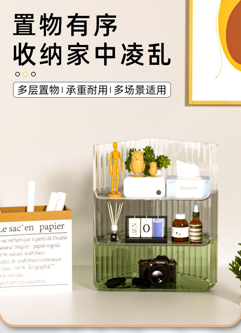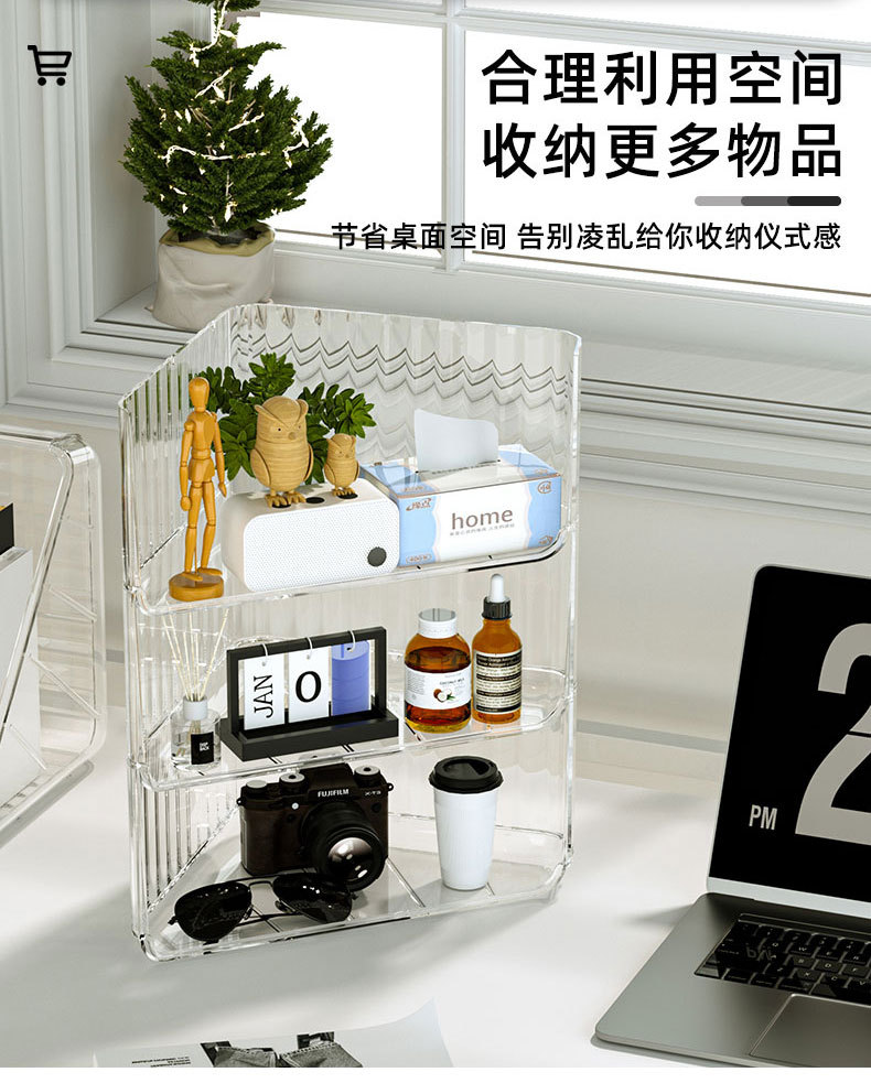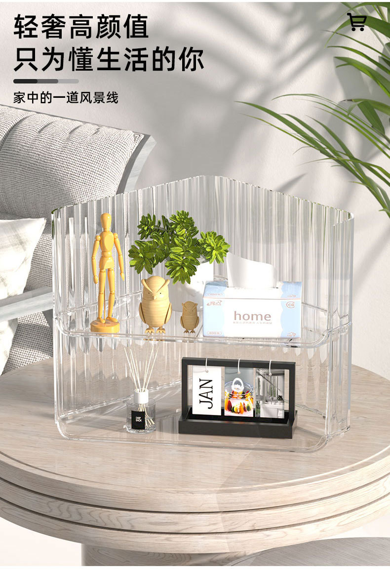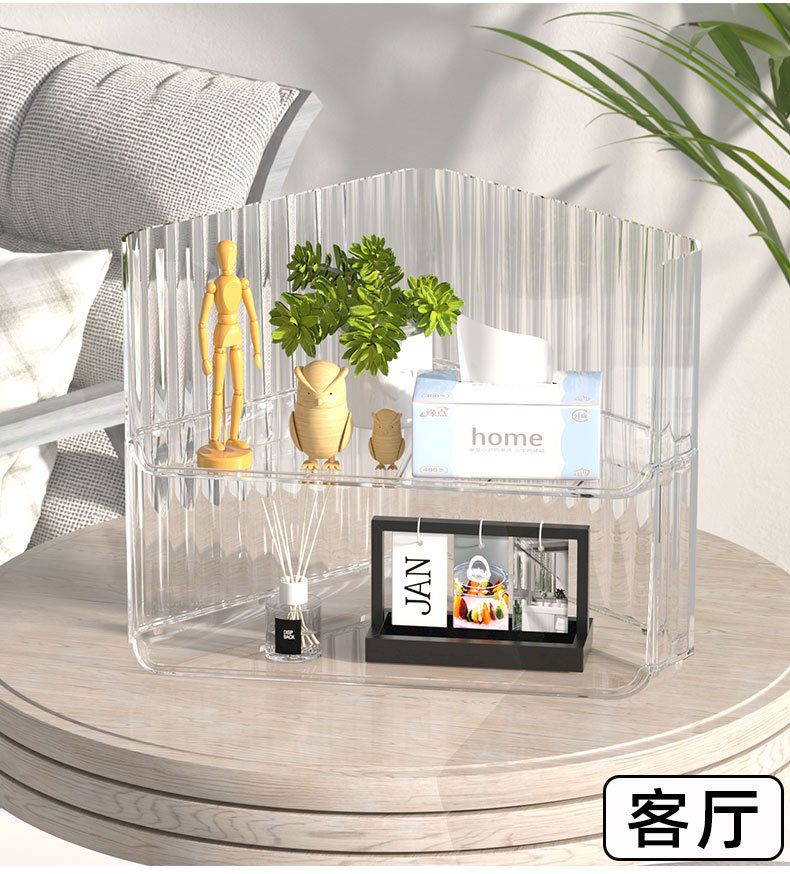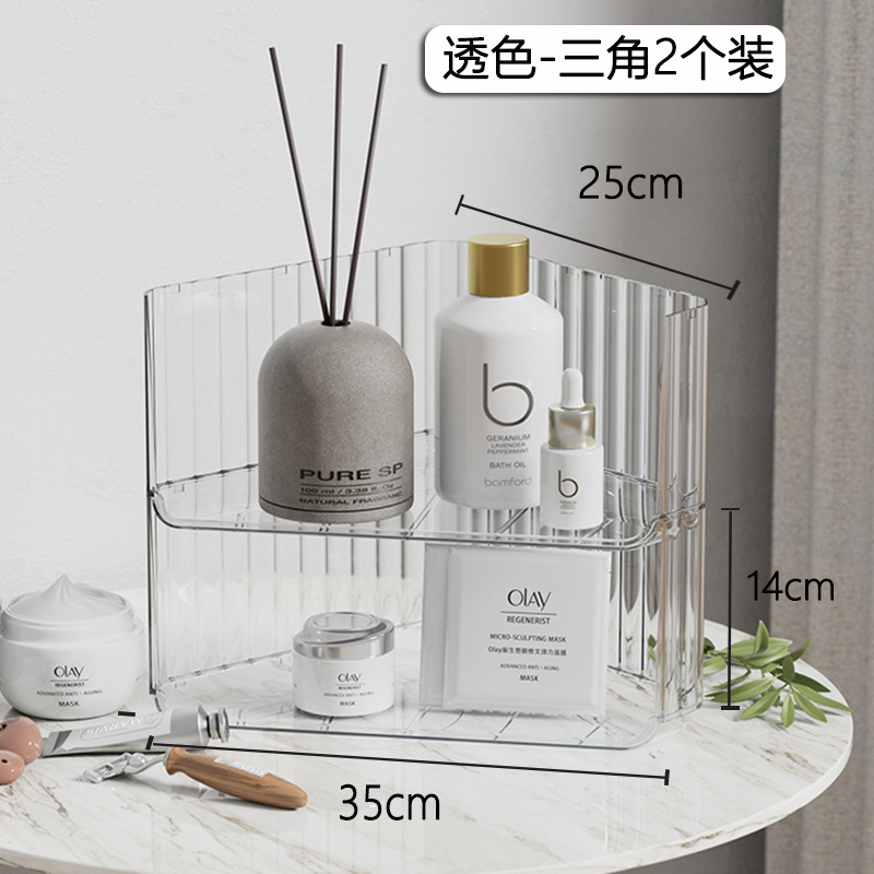 오버플로 구매 데스크탑 보관함 코너 투명 화장품 선반 쌓을 수있는 학생 책상 사무실 삼각대