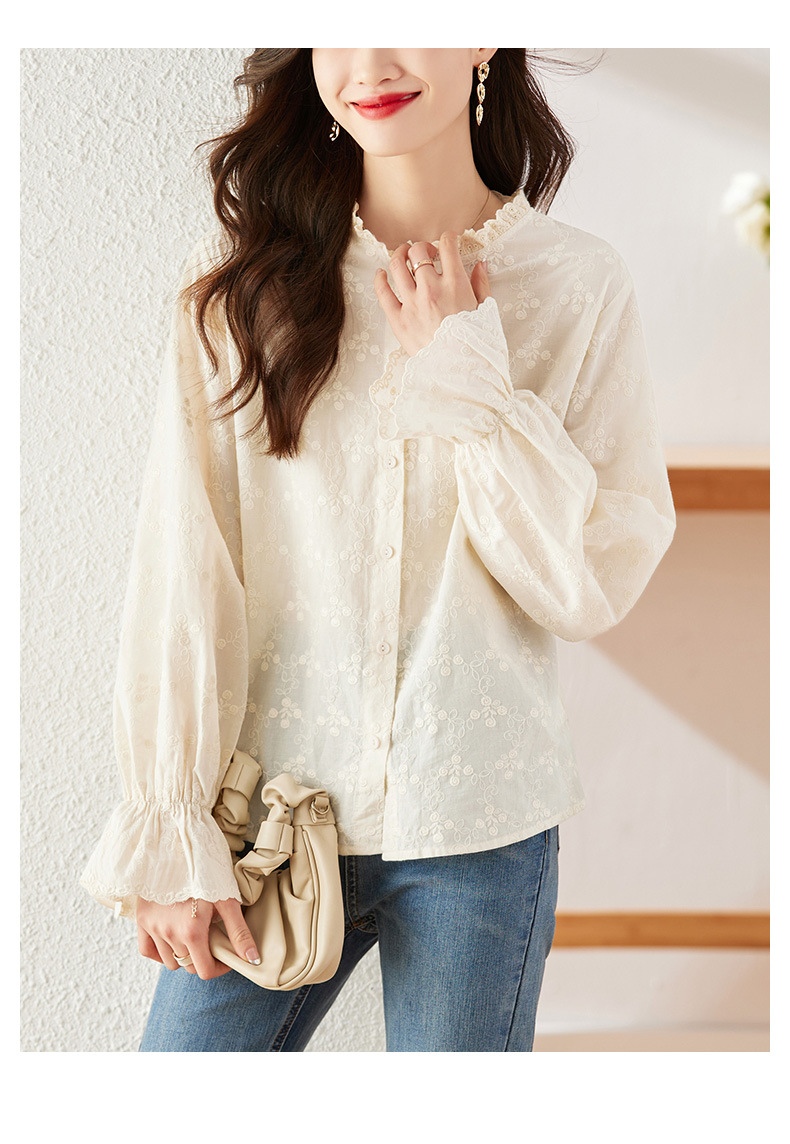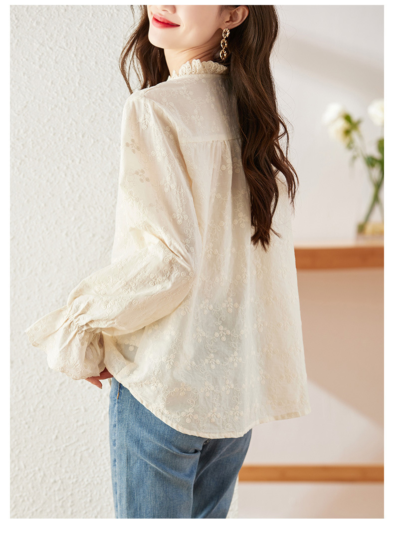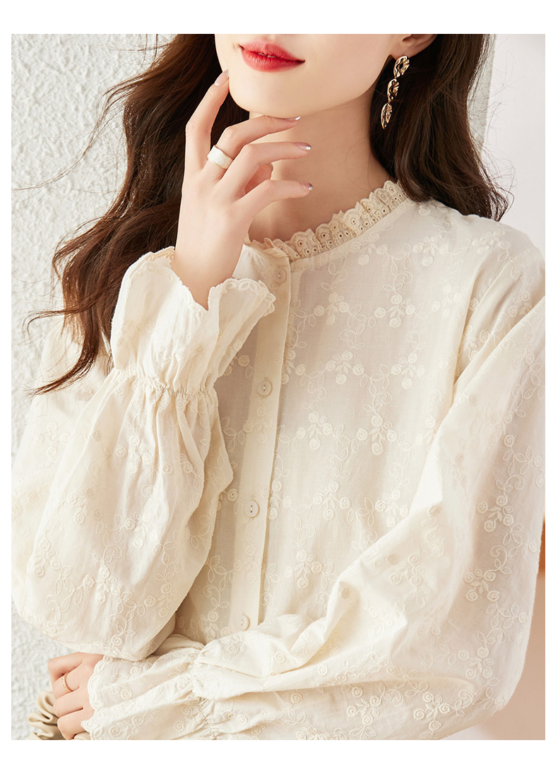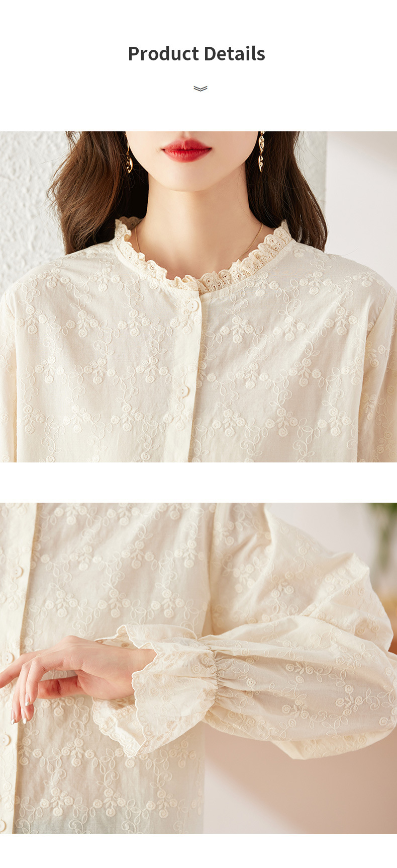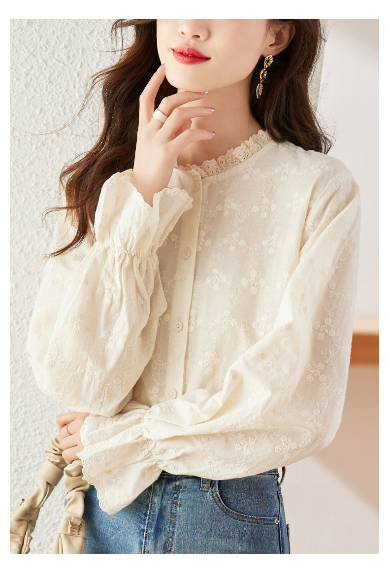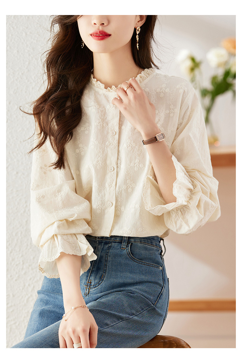 공장 직판 살구색 자수 여성 셔츠 긴팔 2025 봄 가을 레이스 칼라 탑 순면 셔츠스토어 가기
