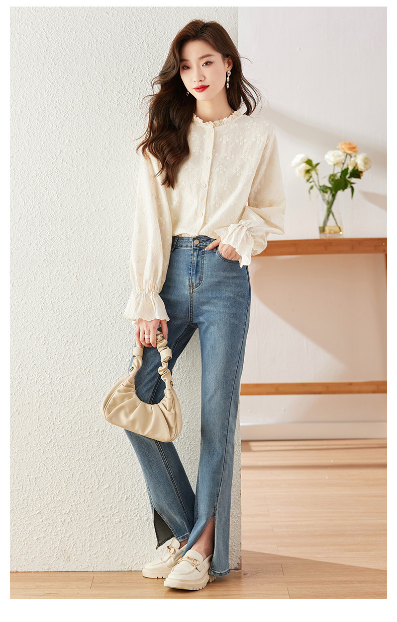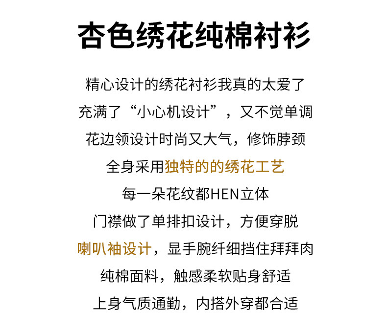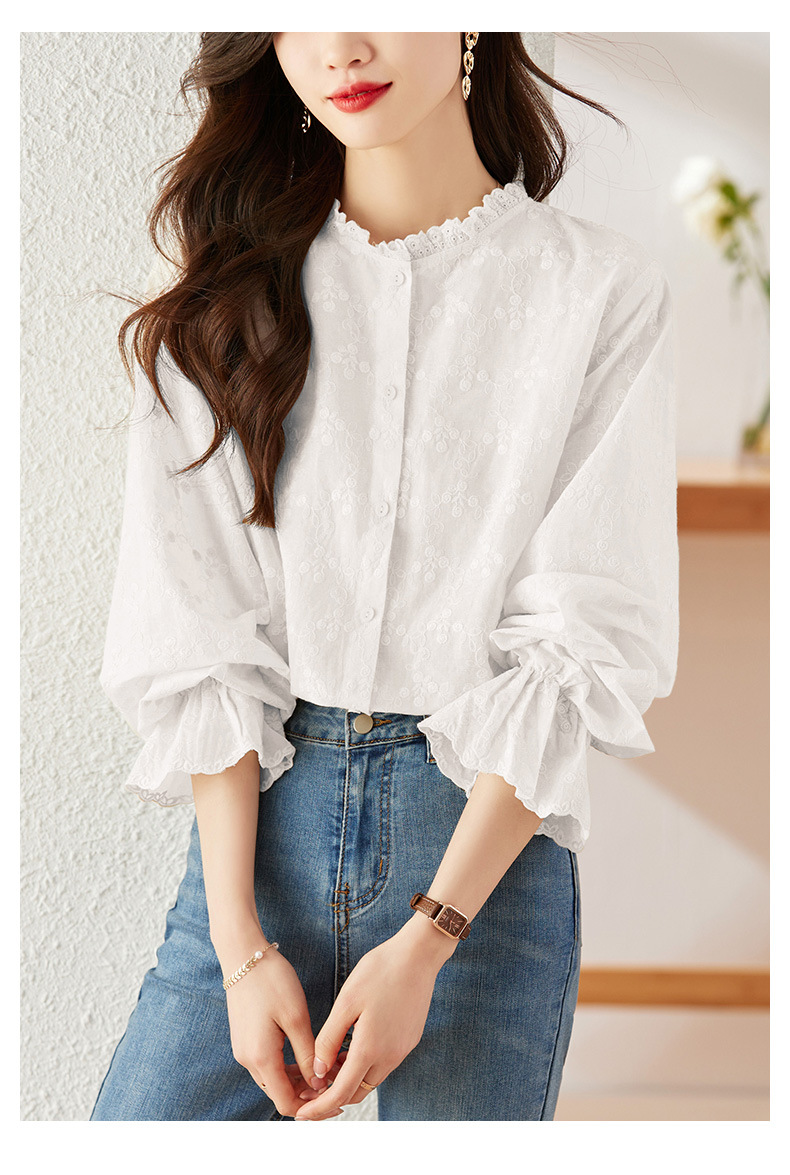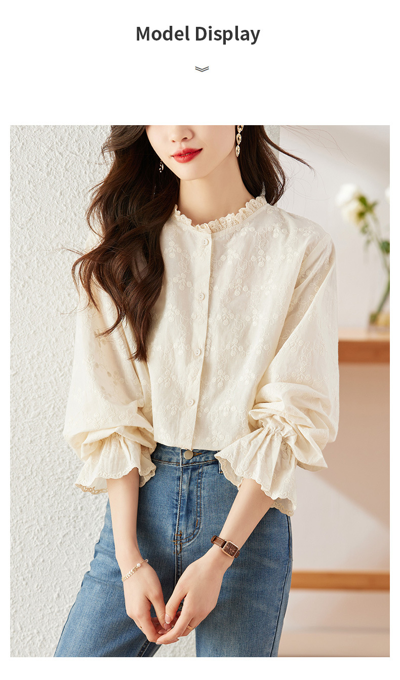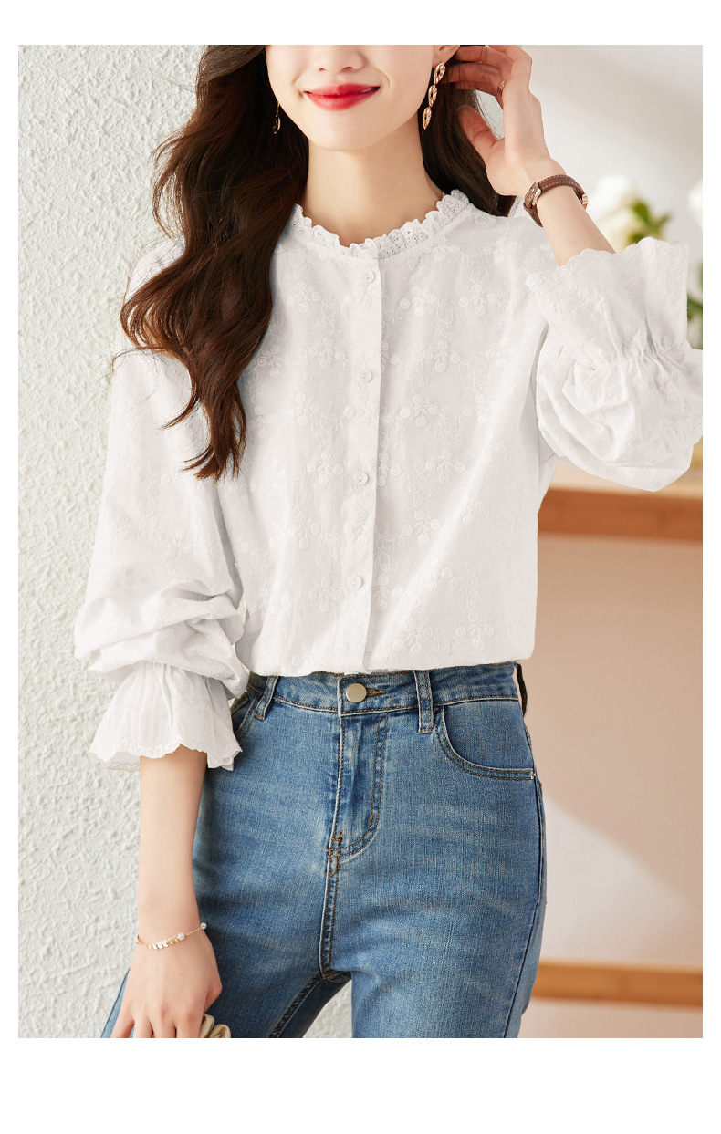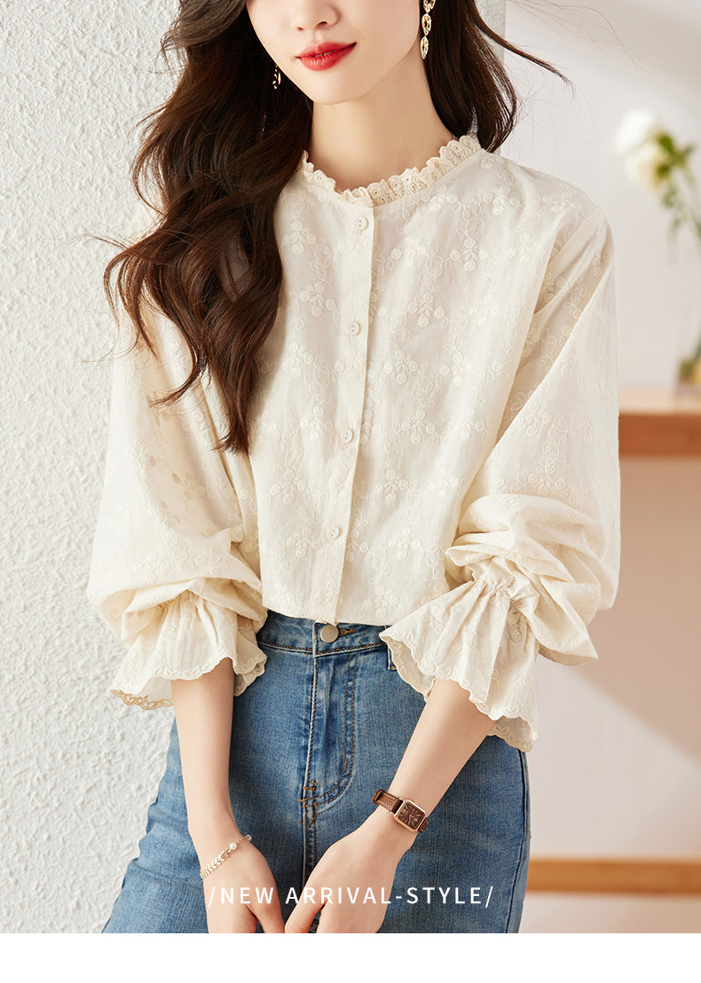 공장 직판 살구색 자수 여성 셔츠 긴팔 2025 봄 가을 레이스 칼라 탑 순면 셔츠스토어 가기