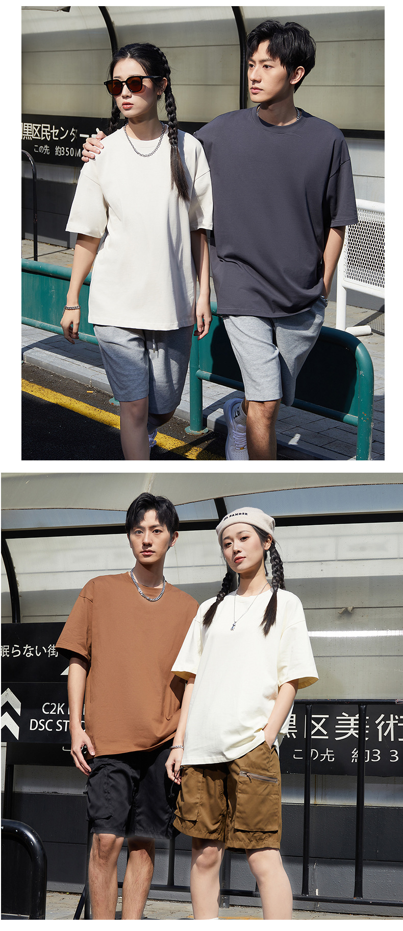 남성 240g 헤비급 티셔츠 반팔 탑 루즈 라운드 넥 트렌디 브랜드 크로스 보더 미국 사이즈 대형 순수 코튼 티셔츠 맞춤형