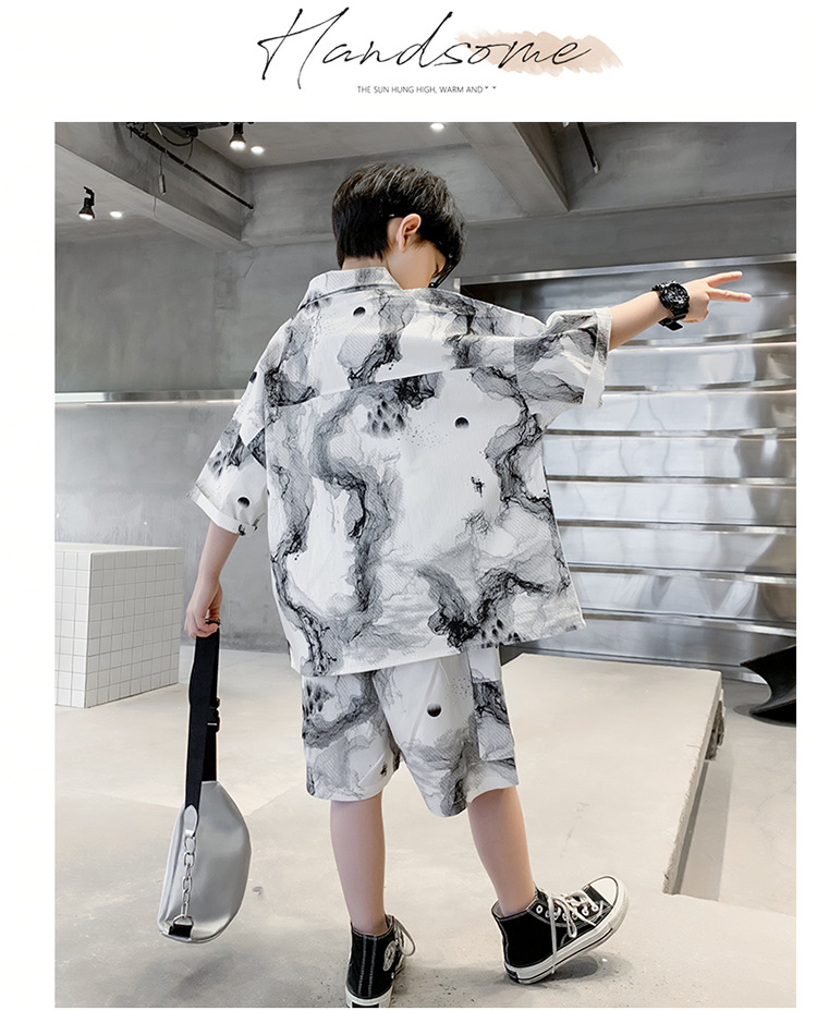 소년 정장 2025 여름 얇은 중대형 어린이 수묵화 반팔 셔츠와 반바지 투피스 세트스토어 가기
