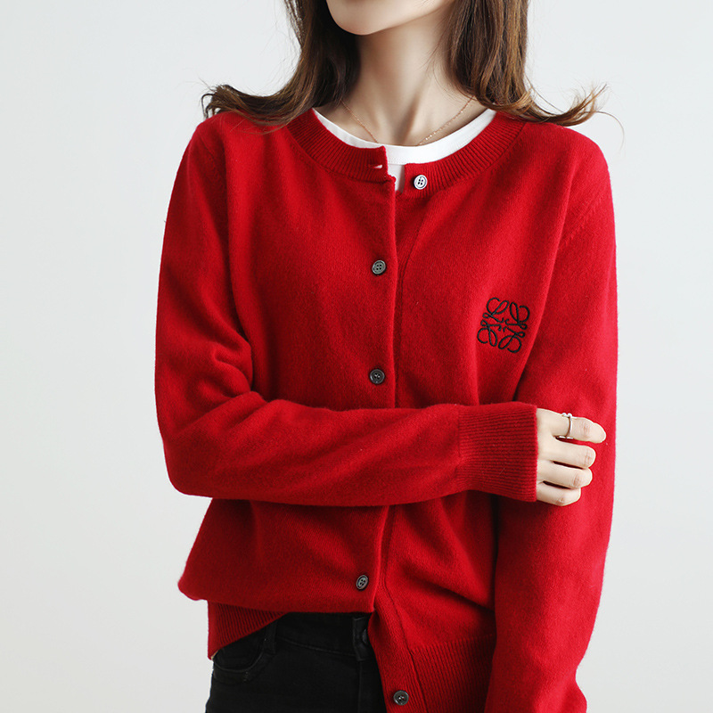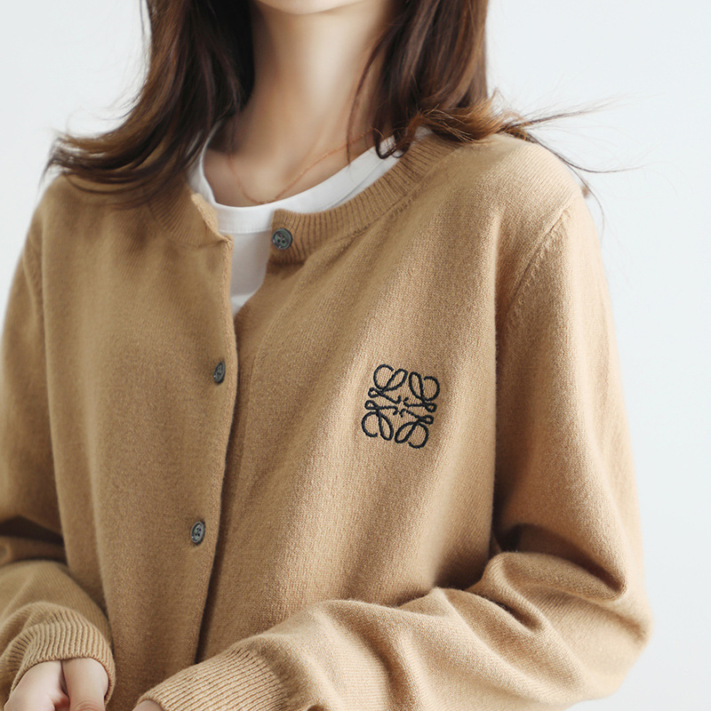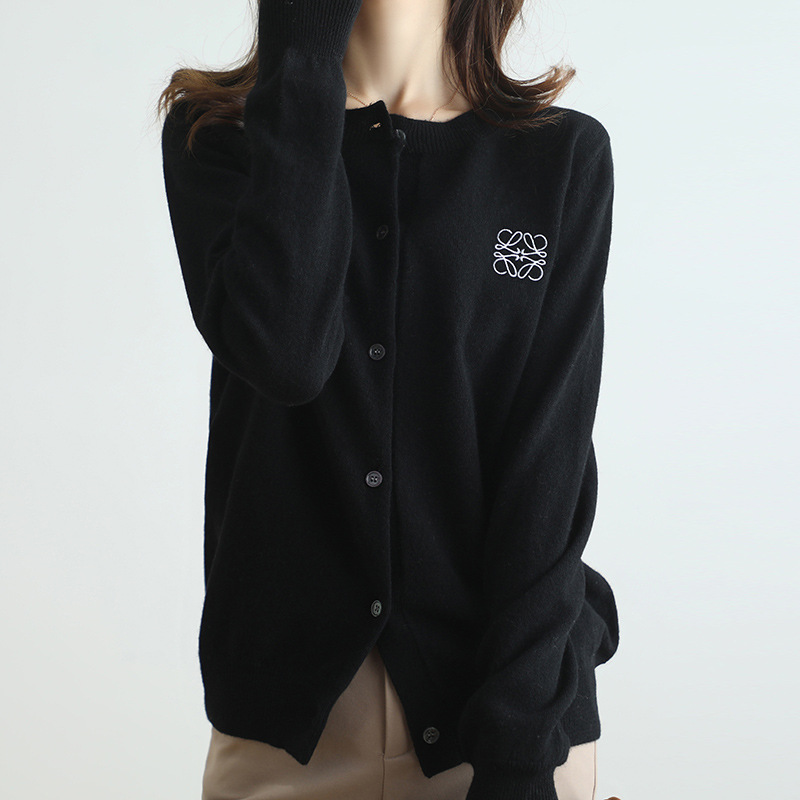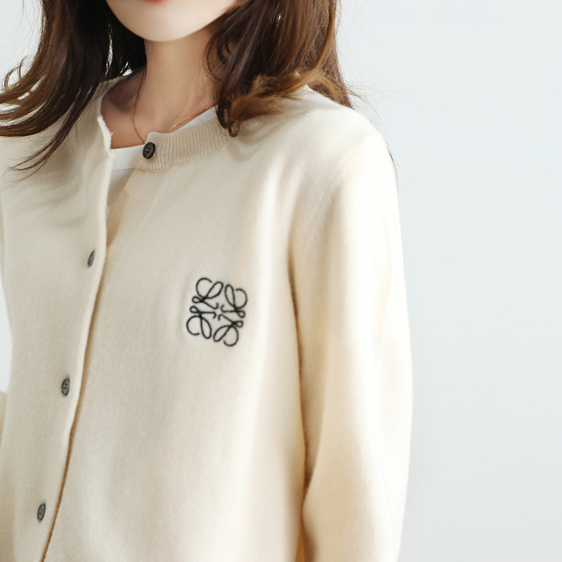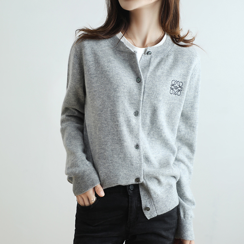 크루넥 니트 가디건 여성용 솔리드 컬러 느슨한 슬림 스웨터 코트 긴팔 스웨터 자수 웨스턴 스타일 연령 감소 탑