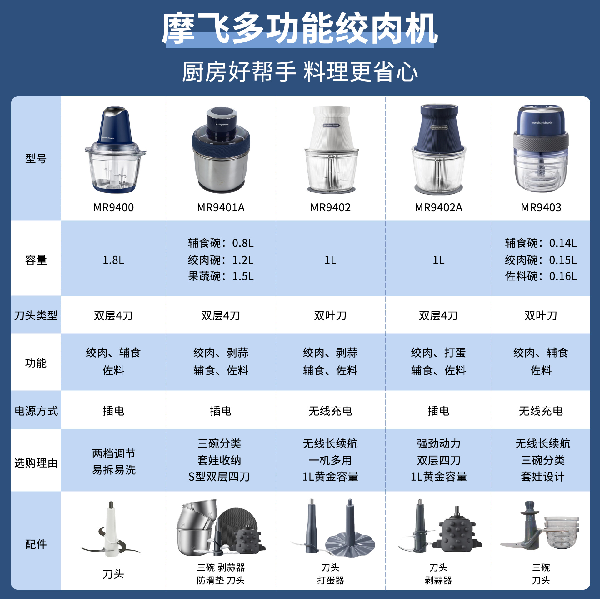 Mofei 푸드 프로세서 MR9400 고기 분쇄기 가정용 전기 다기능 스터핑 그라인더 보조 식품 기계 믹서스토어 가기