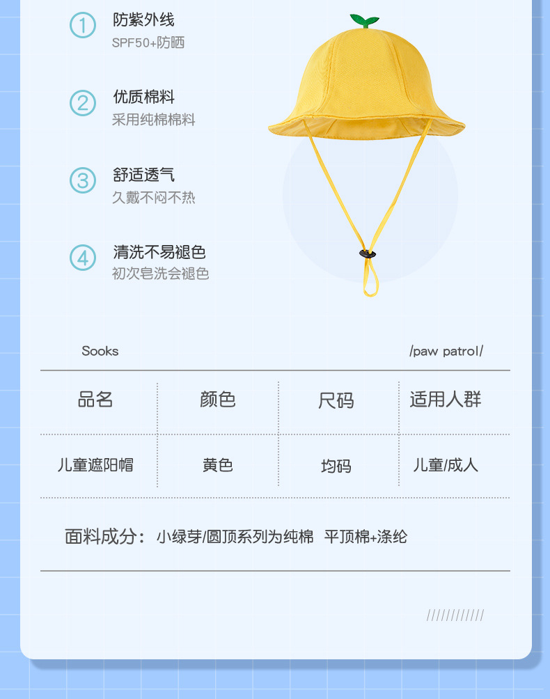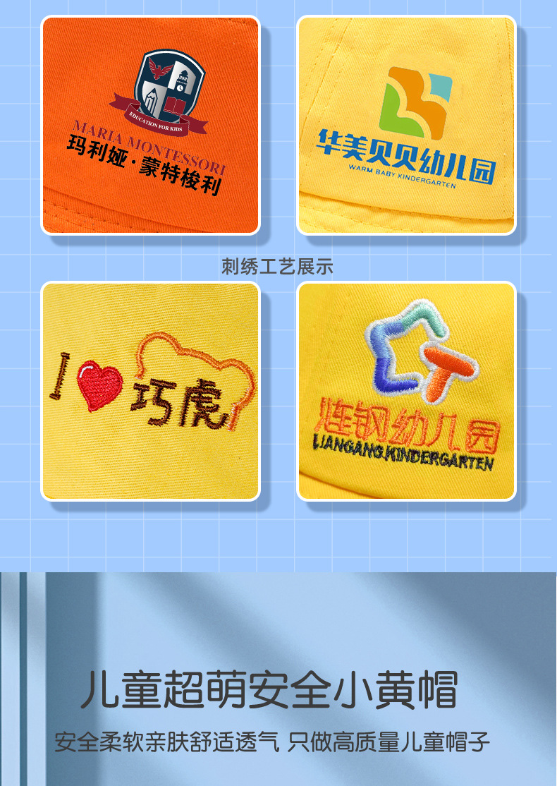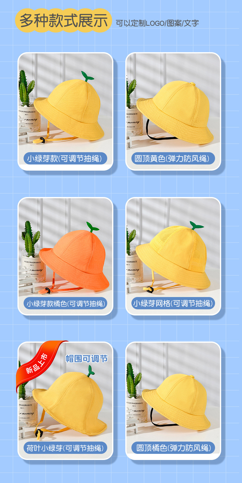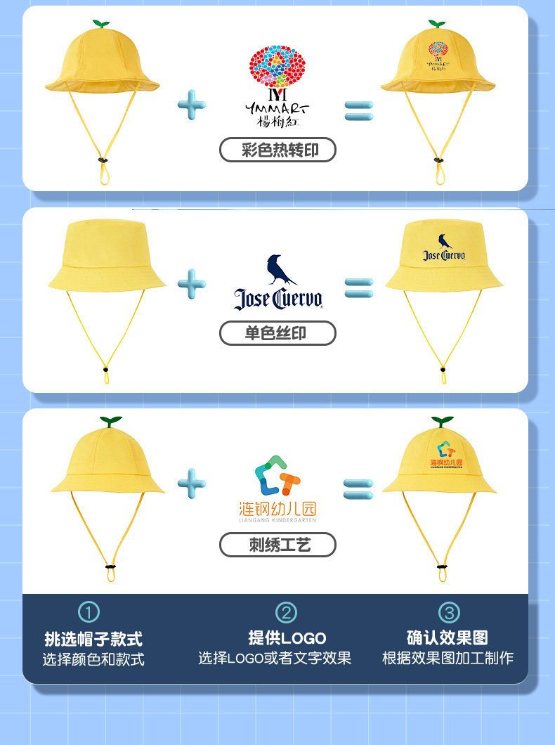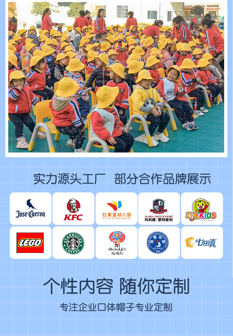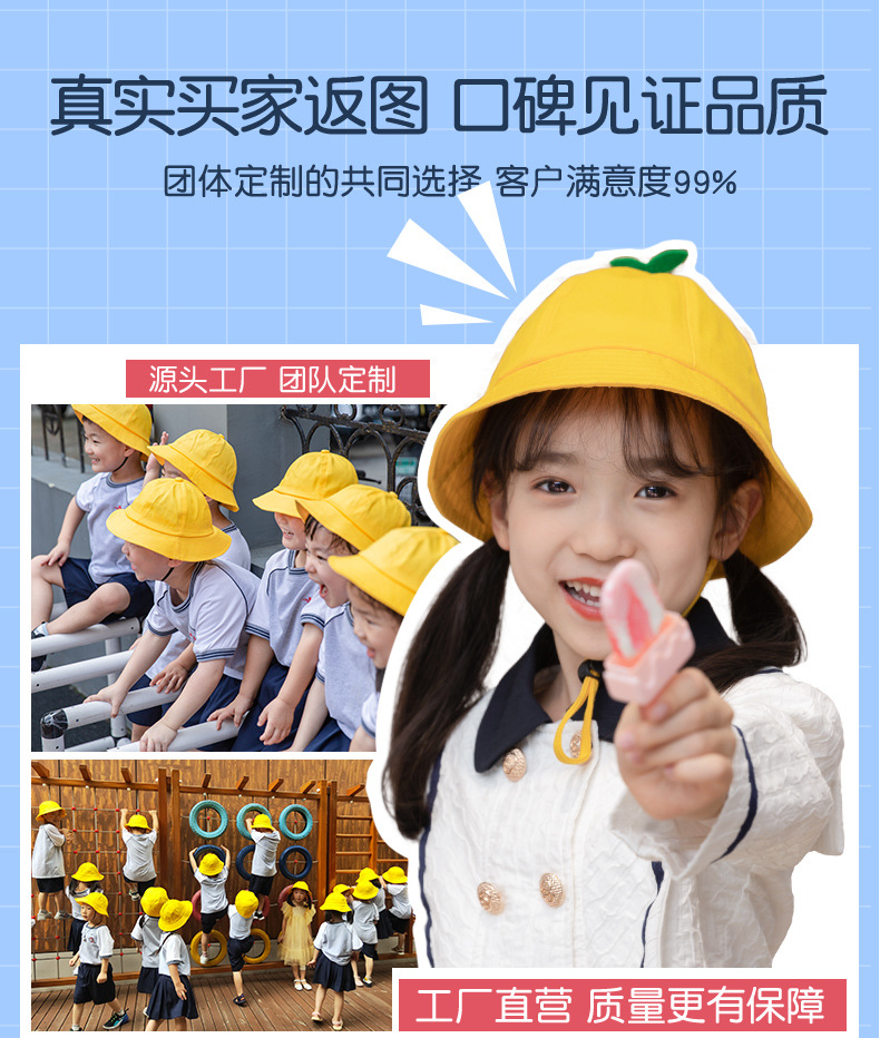 어린이 작은 노란색 모자 유치원 모자 인쇄 로고 차양 봄 나들이 모자 노란색 모자 초등학교 어부 모자 도매스토어 가기
