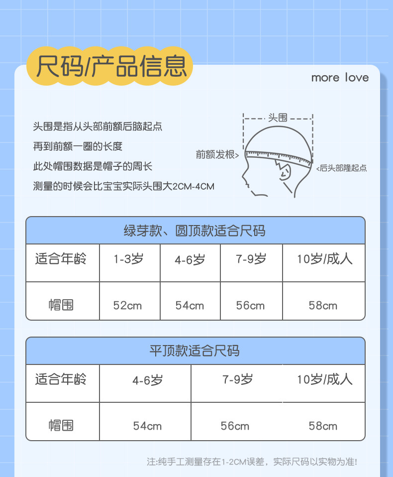 • 모자 둘레 54cm (유치원 소규모 학급 4세)