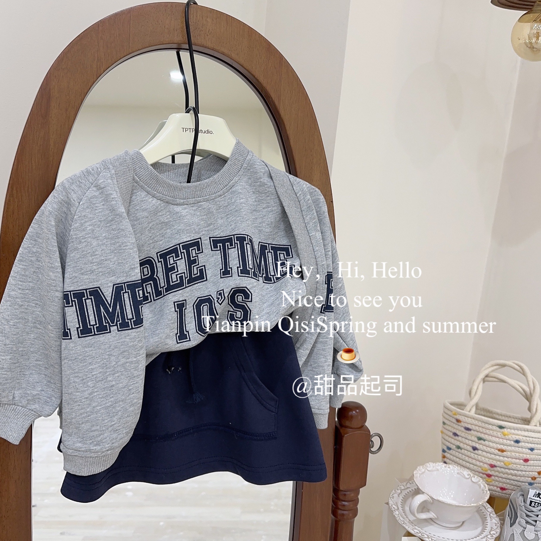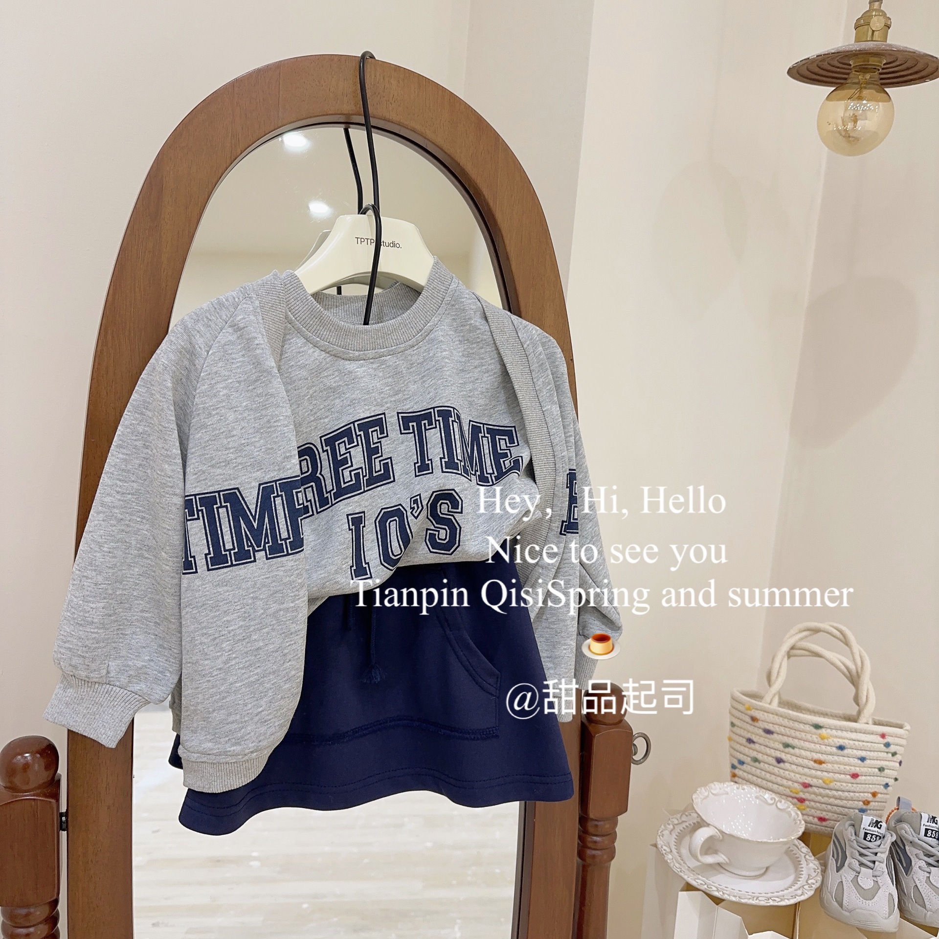 한국 아동복 2023 봄 소녀 편지 인쇄 캐주얼 카디건 조끼 최고 치마 대학 스타일 세트스토어 가기