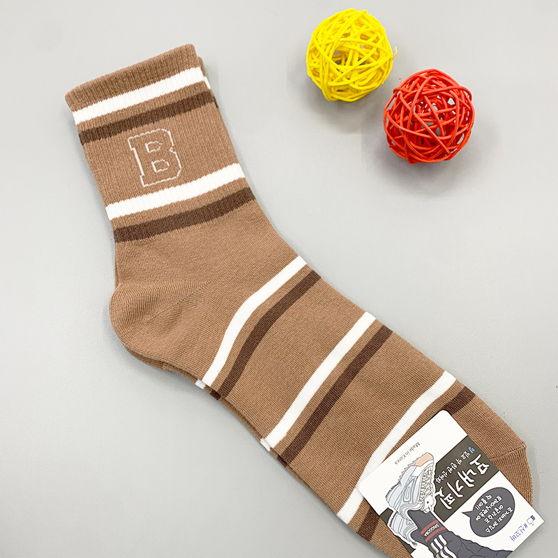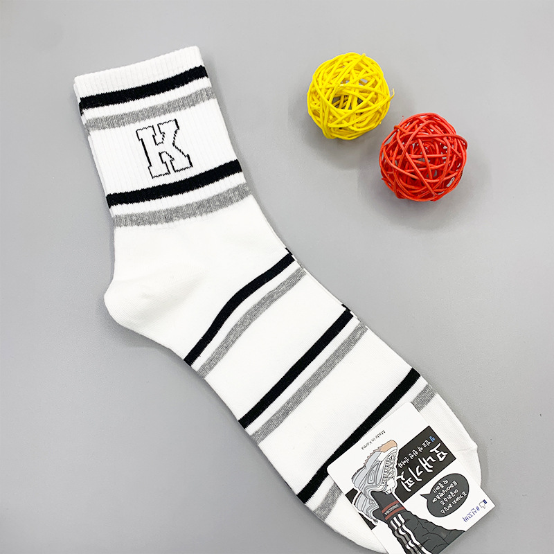 2023 한국 동대문 스트라이프 레터 스포츠 남자 중간 길이 양말 한국 봄 새 남자 양말