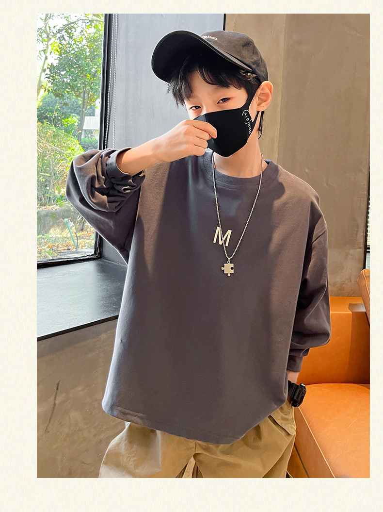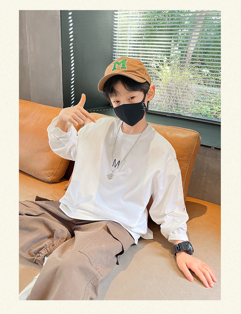 아동 긴팔 티셔츠 소년 이너 레이어드 셔츠 퓨어 코튼 화이트 2025 봄 신작 가을 의류 얇은 섹션 스트리트 t