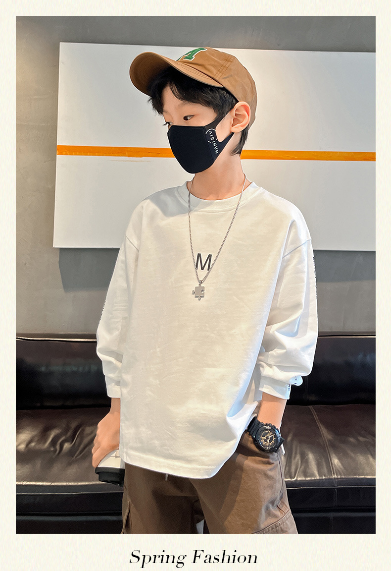 아동 긴팔 티셔츠 소년 이너 레이어드 셔츠 퓨어 코튼 화이트 2025 봄 신작 가을 의류 얇은 섹션 스트리트 t스토어 가기