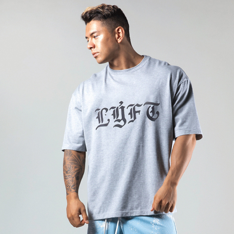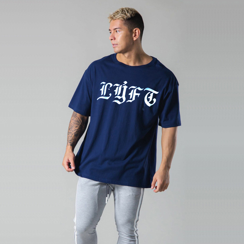 유럽과 미국 크로스 보더 근육 피트니스 형제 스포츠 남성용 반팔 티셔츠 패션 캐주얼 면 느슨한 반팔 탑 트렌디스토어 가기