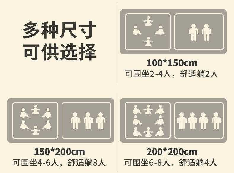• 150*200cm (4-6 명 정도 앉을 수 있음)