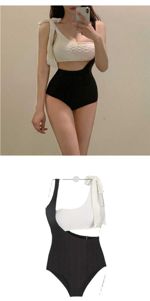 봄 2023 새로운 원피스 수영복 민소매 삼각형 원피스 수영복 그림 리본 가슴 패드 스틸 지원 여성 캐주얼스토어 가기