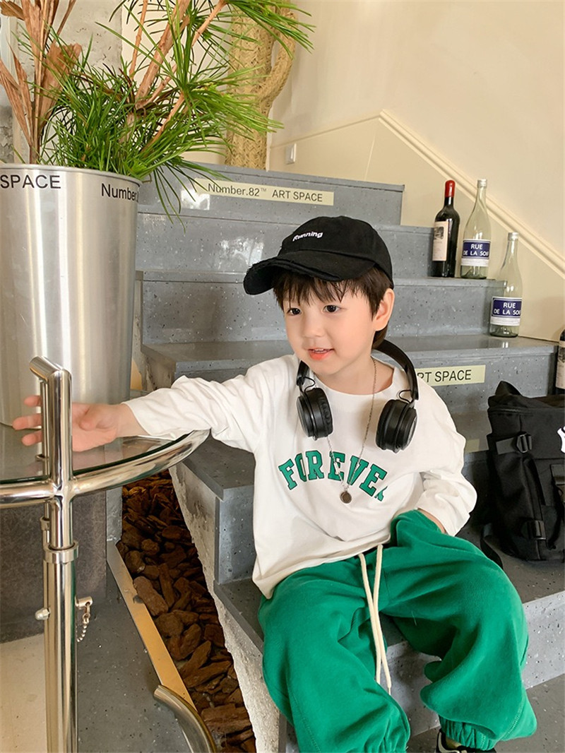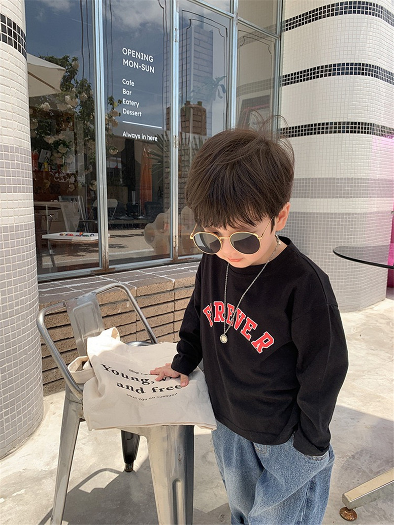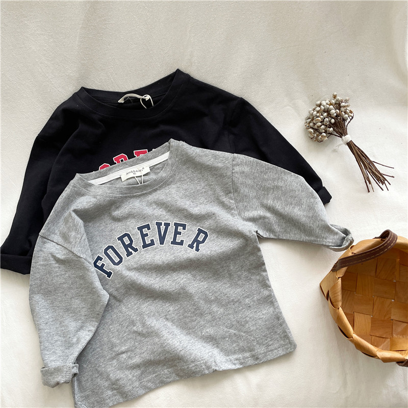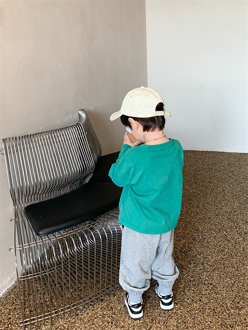봄과 가을 어린이 면 티셔츠 소년과 소녀 한국 느슨한 긴 소매베이스 셔츠 아기 스포츠 캐주얼 탑