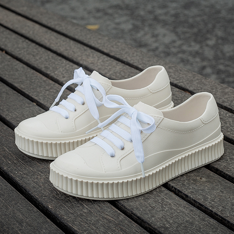 새로운 로우 탑 방수 흰색 신발 학생 패션 봄과 가을 장화 성인 얕은 입 미끄럼 방지 작업 고무 신발 장화