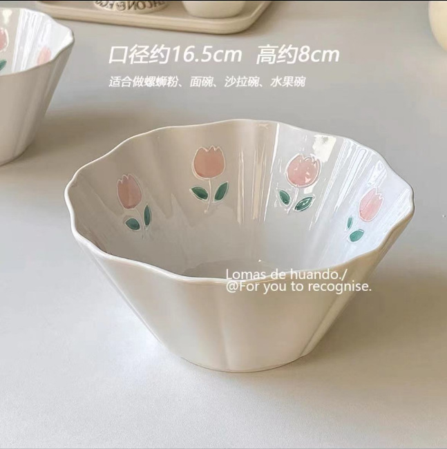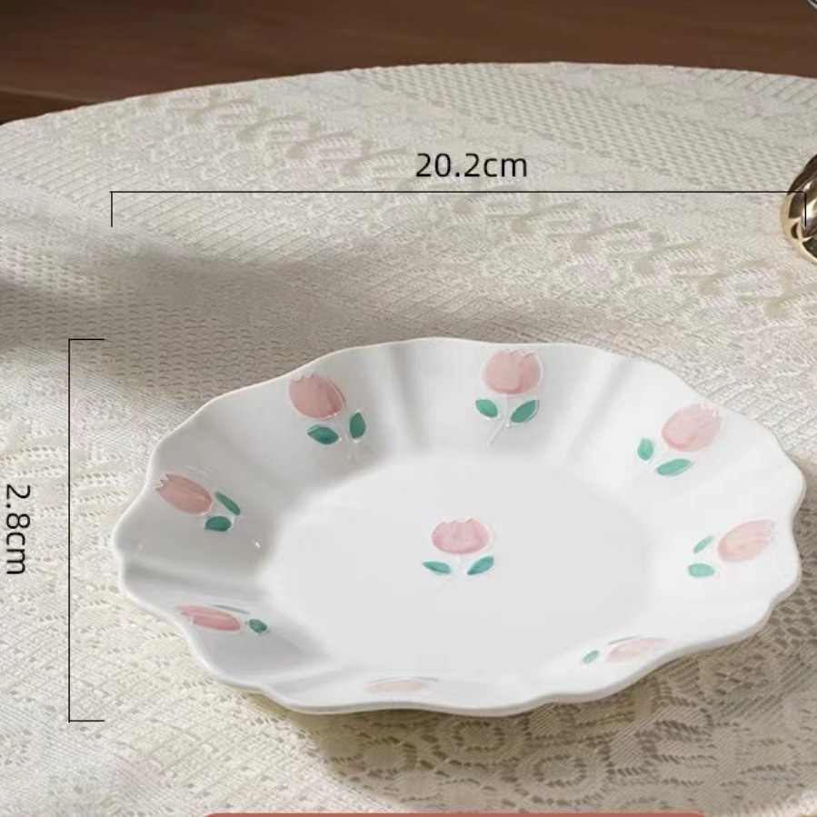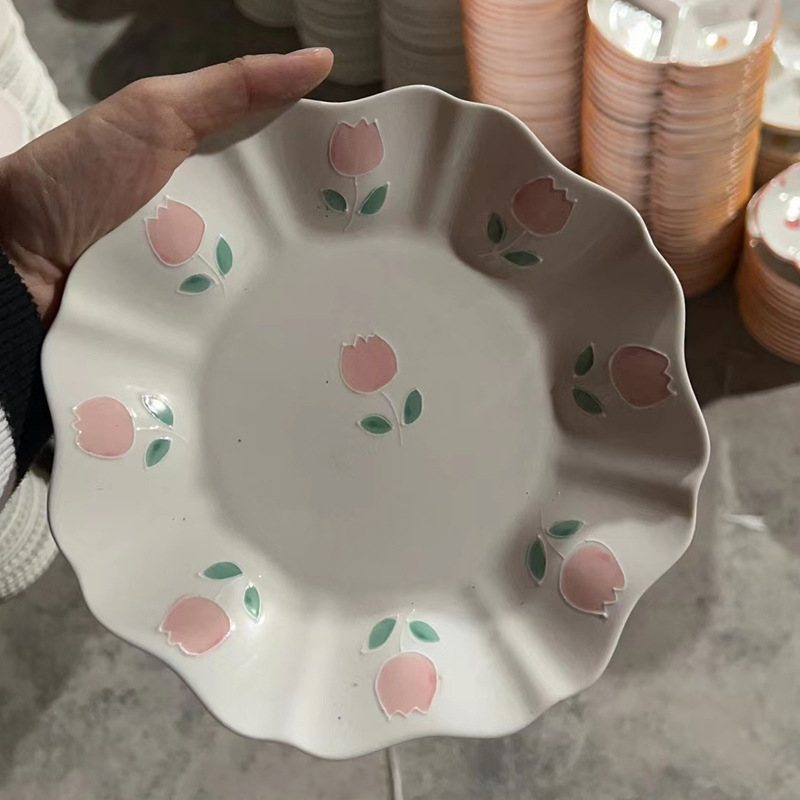 손으로 그린 양각 튤립 수프 그릇 접시 접시 접시 홈 고급 라이트 럭셔리 크리에이티브 식기 플랫 플레이트 아침 식사 접시