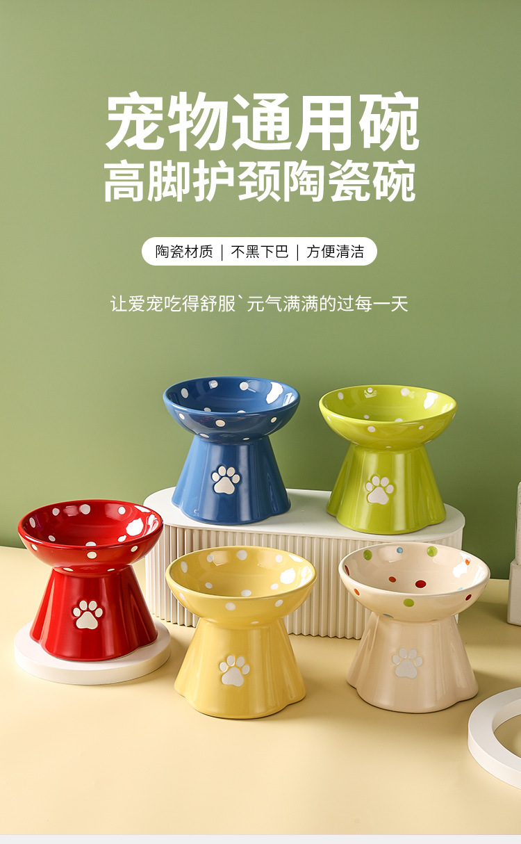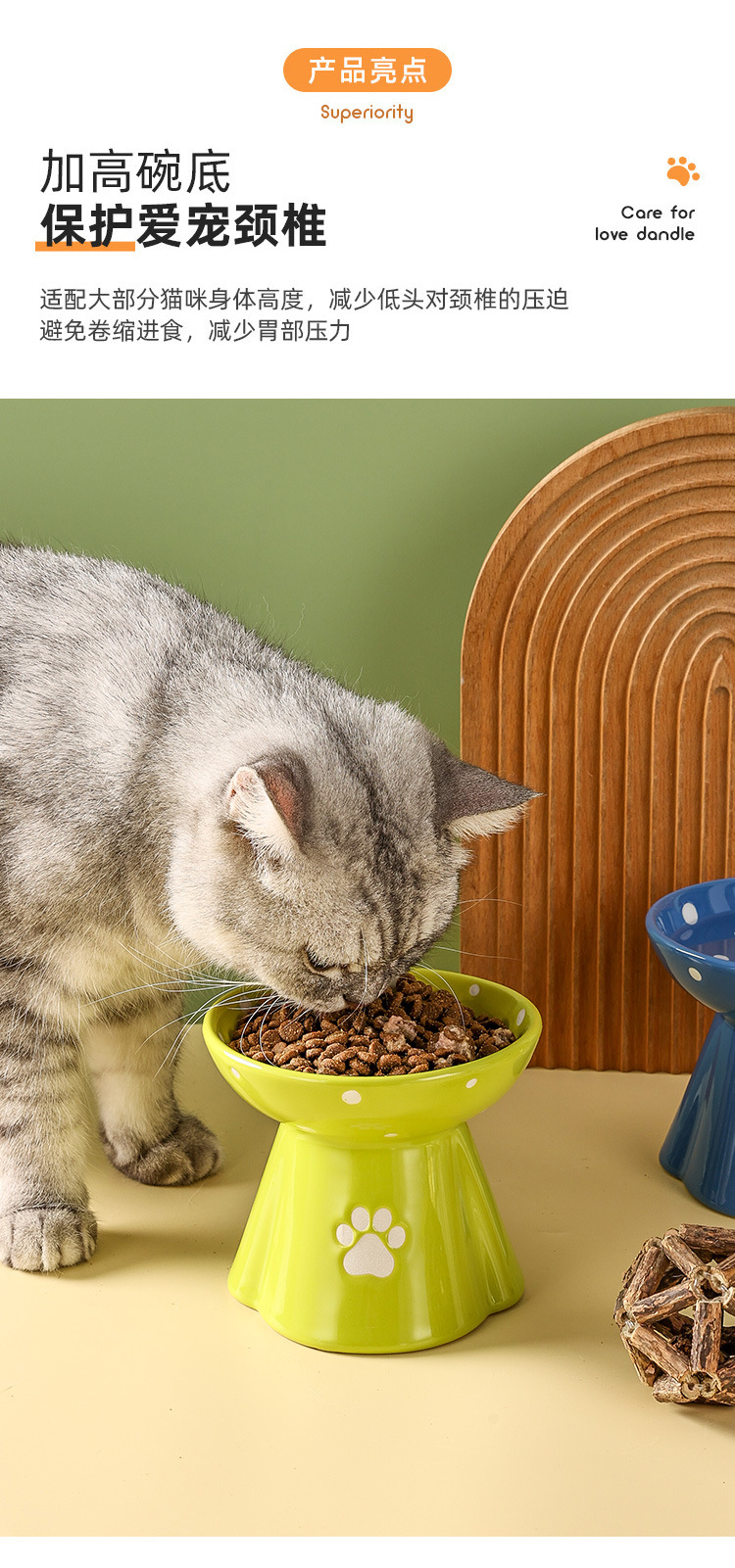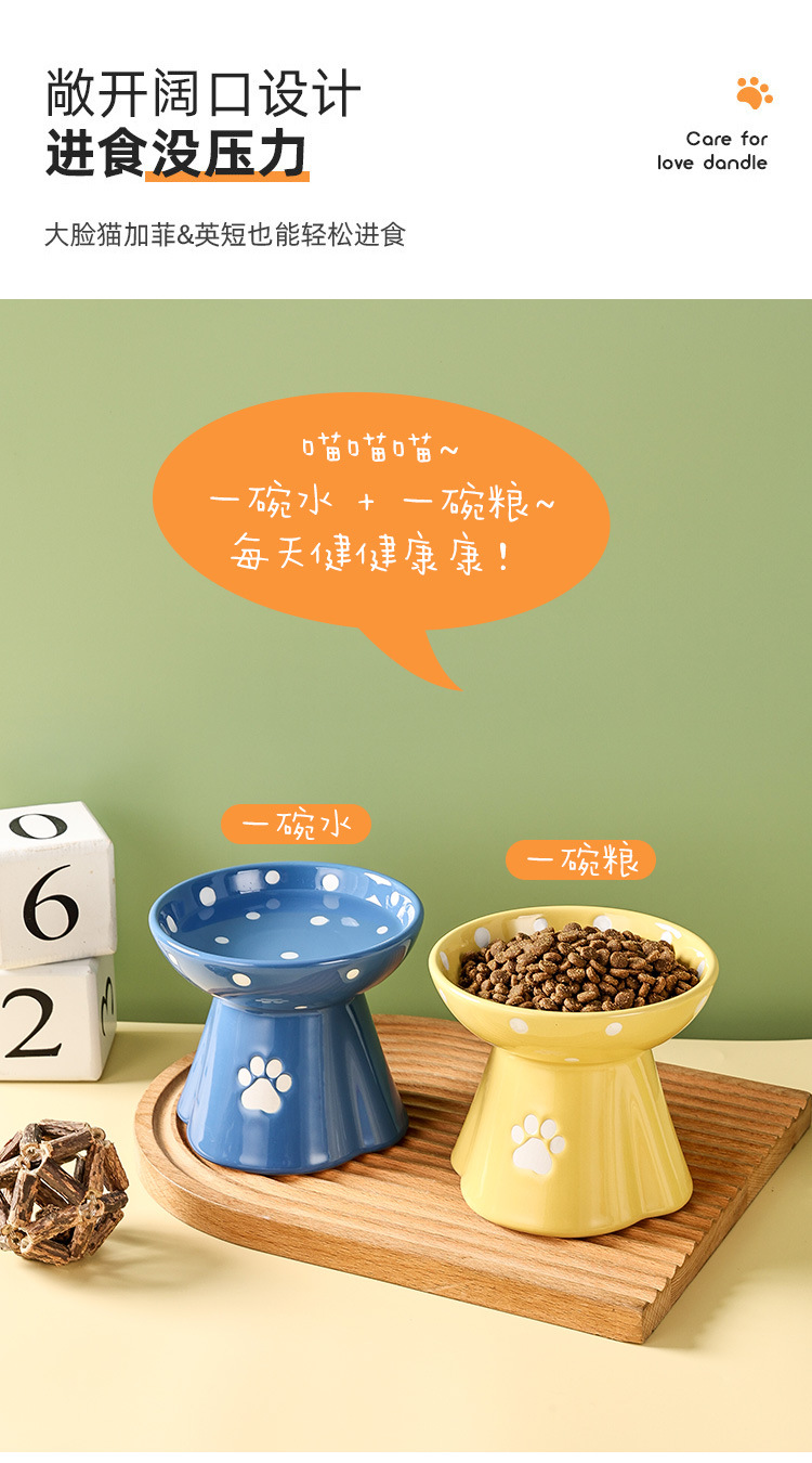 고양이 그릇 세라믹 보호 경추 고양이 음식 분지 안티 블랙 턱 높은 발 고양이 그릇 랙 고양이 테디독 그릇 애완 동물 그릇스토어 가기