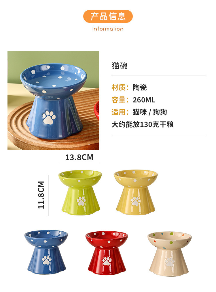고양이 그릇 세라믹 보호 경추 고양이 음식 분지 안티 블랙 턱 높은 발 고양이 그릇 랙 고양이 테디독 그릇 애완 동물 그릇