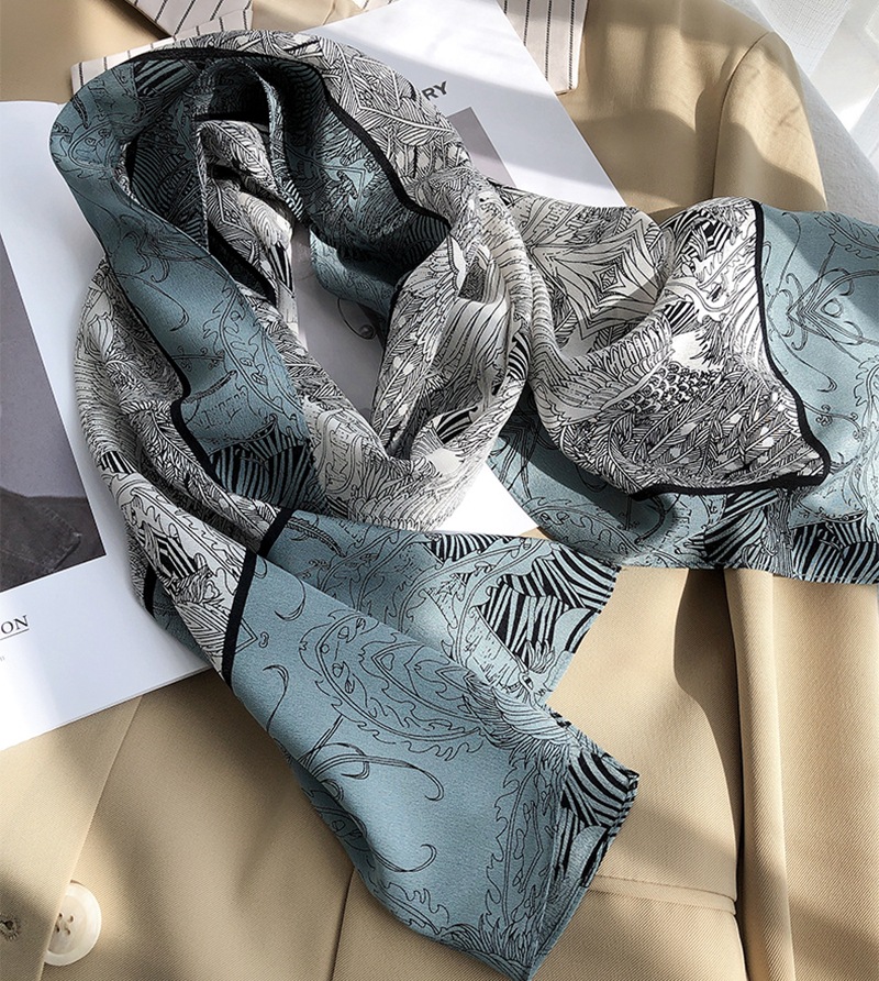 여름 신선한 민트 그린 크레페 드 신 실크 체인 모양 패턴 뽕나무 실크 다용도 긴 실크 스카프 스카프 스카프스토어 가기