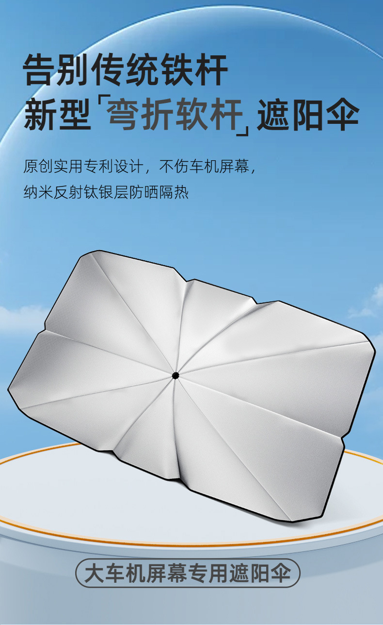 产品特点:防紫外线不透光,软胶弯杆不伤车饰,大屏幕车机专用