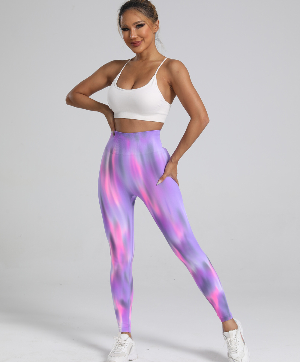 12 색 불꽃 오로라 타이 염색 요가 바지 여성용 원활한 하이 웨이스트 복숭아 엉덩이 피트니스 바지 속건성 스포츠 바지 요가