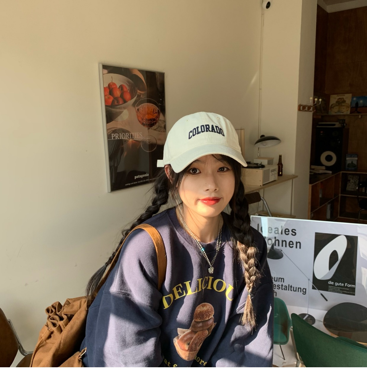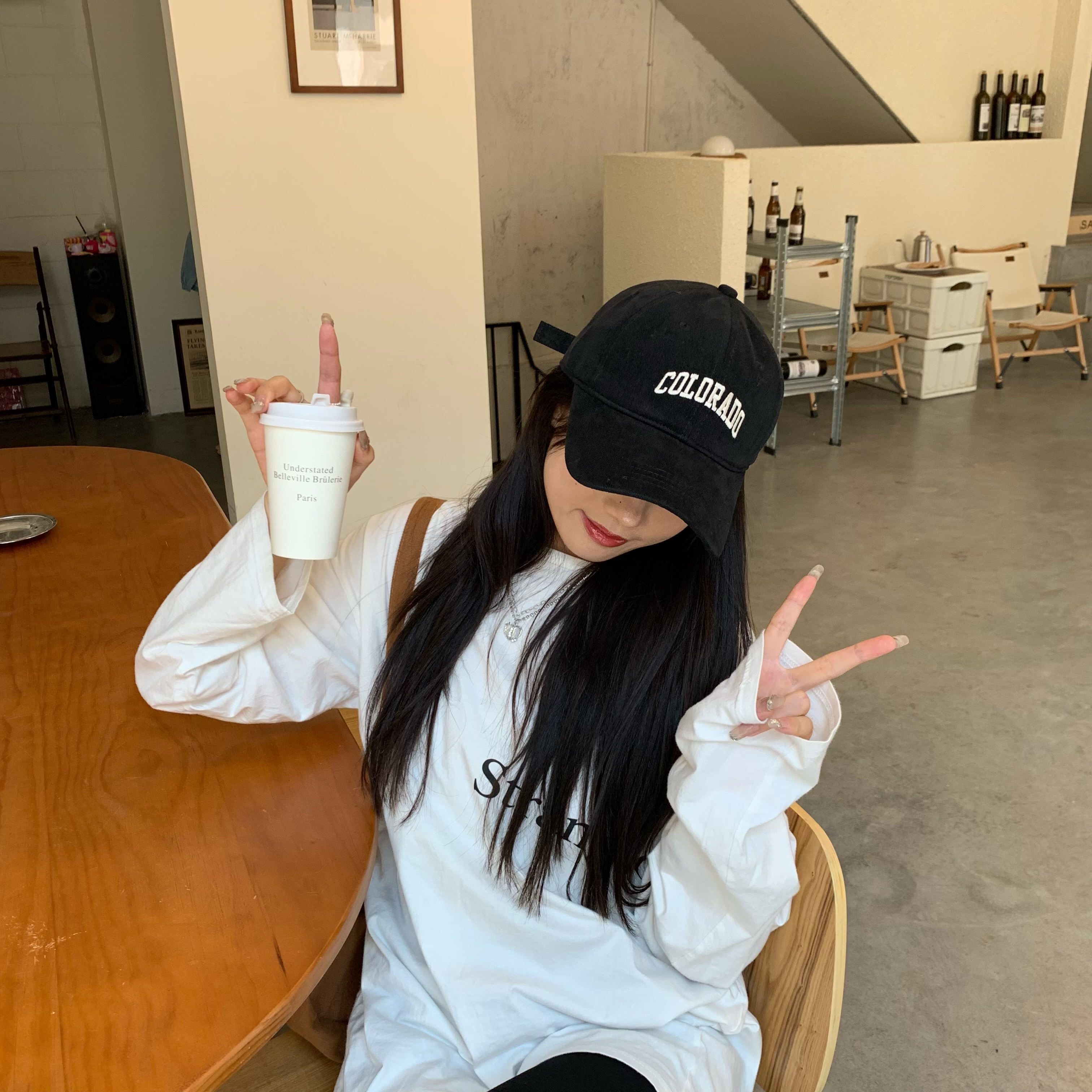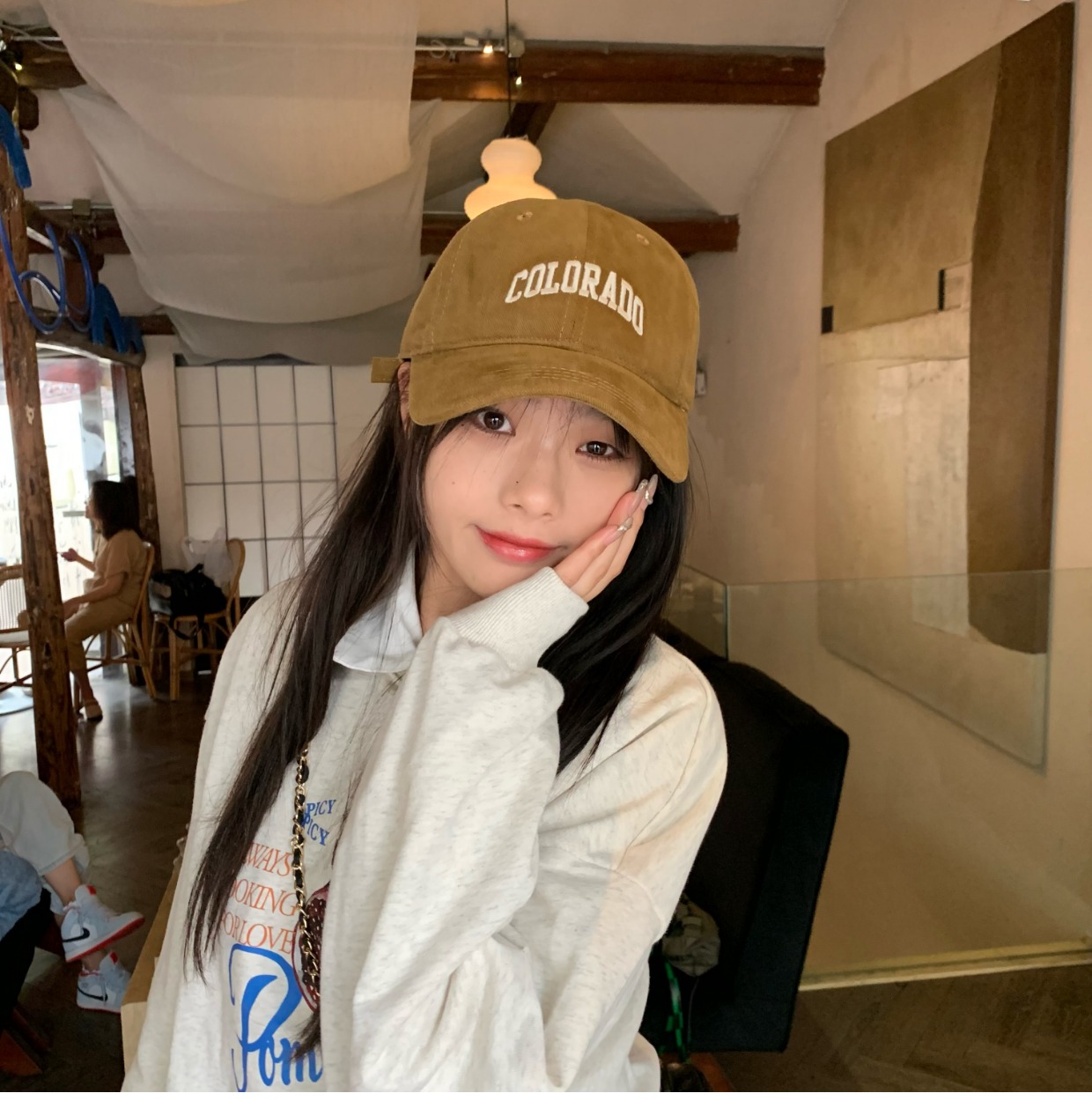 하이 퀄리티 샌딩 질감 소프트 탑 야구 모자 여자의 곡선 챙 모든 매치 간단한 자수 얼굴 보여주는 작은 모자 남자의 유행스토어 가기