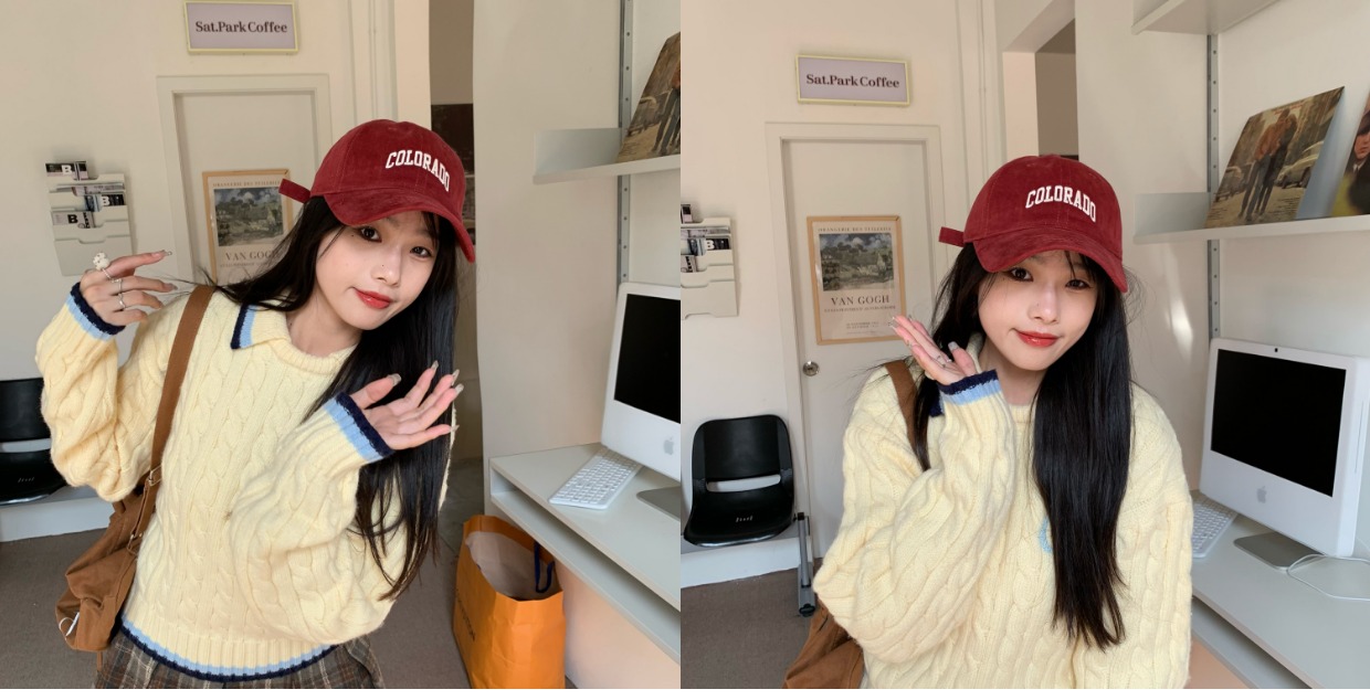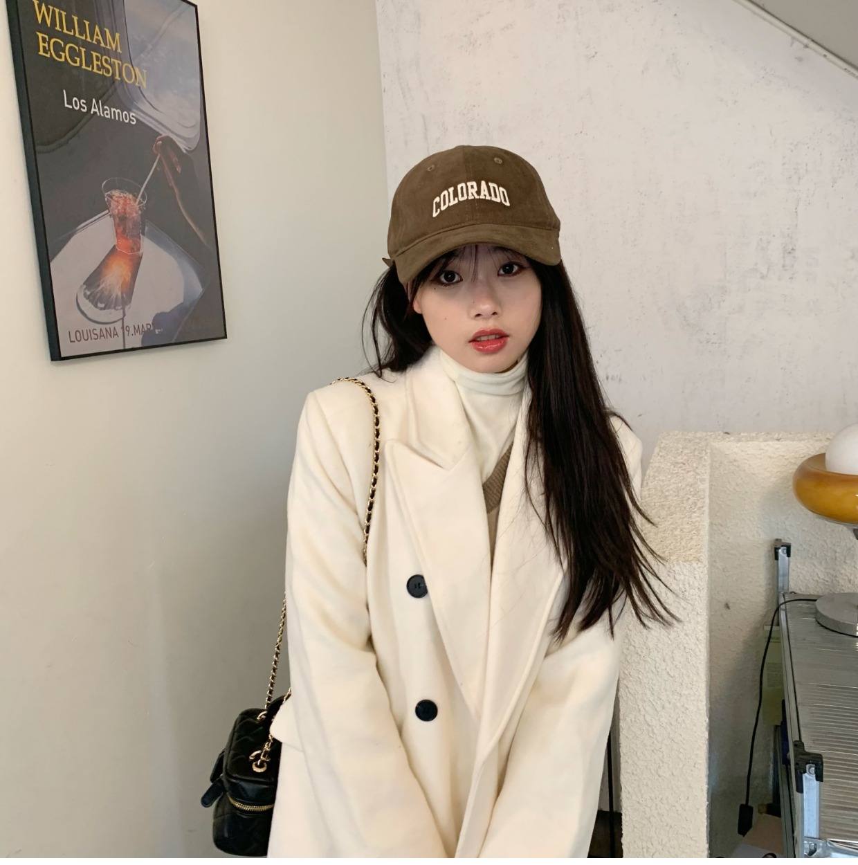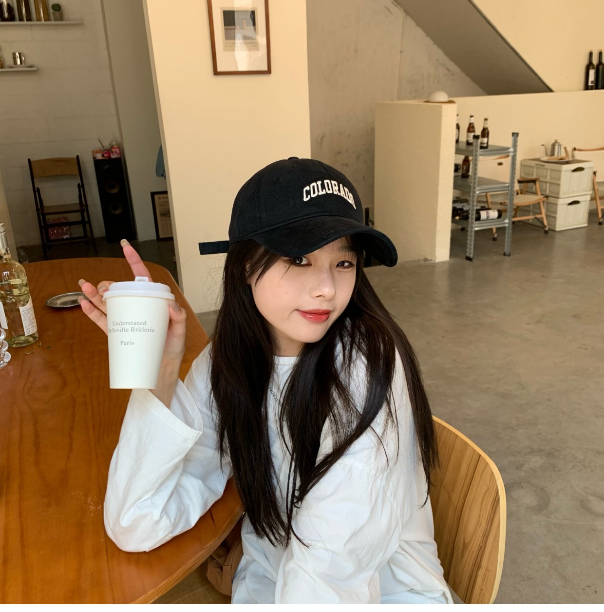 하이 퀄리티 샌딩 질감 소프트 탑 야구 모자 여자의 곡선 챙 모든 매치 간단한 자수 얼굴 보여주는 작은 모자 남자의 유행스토어 가기