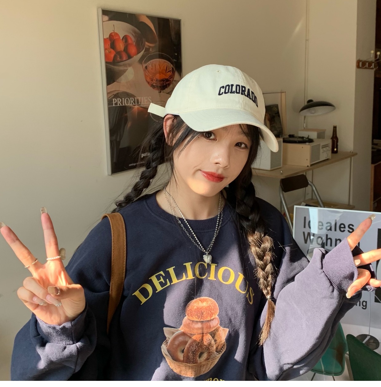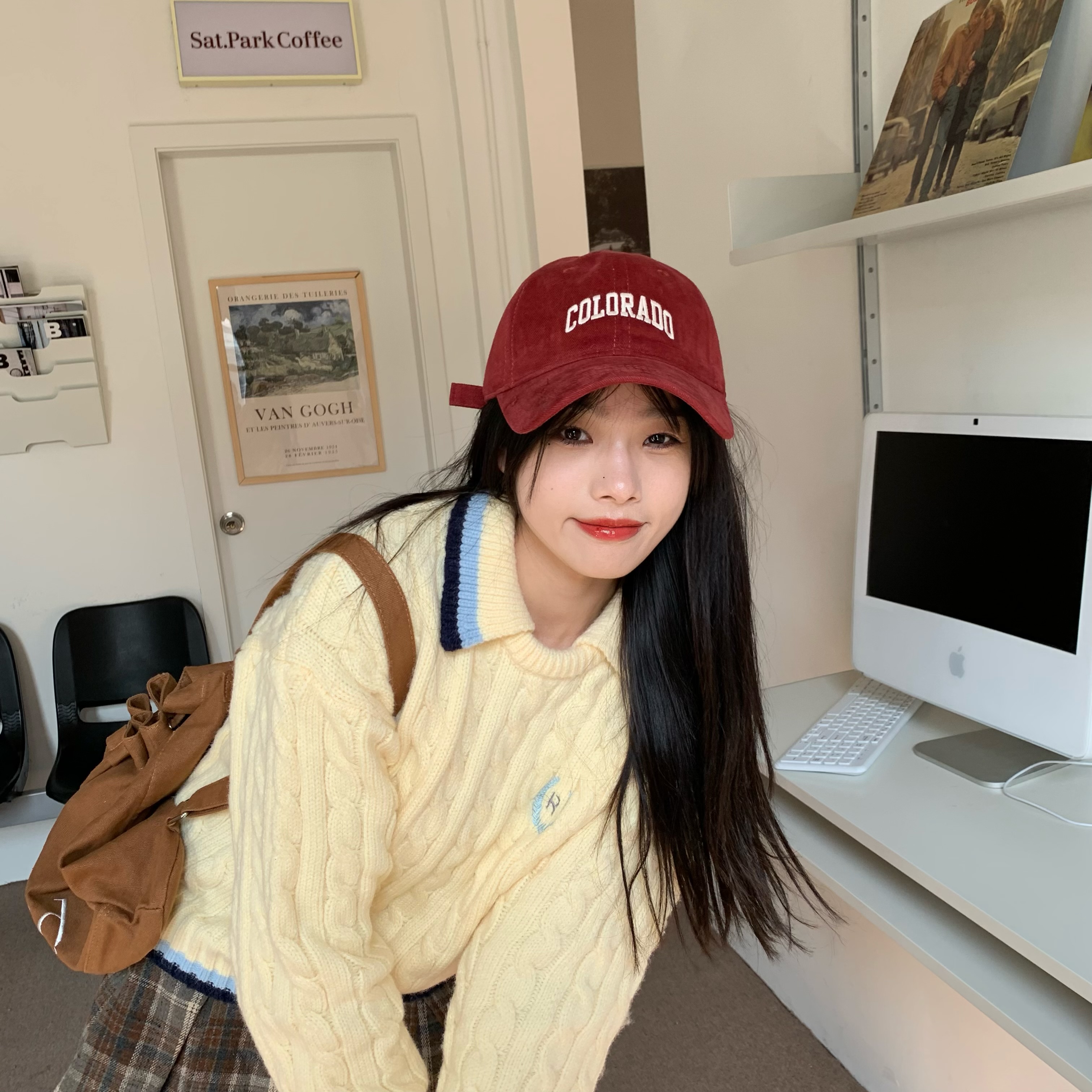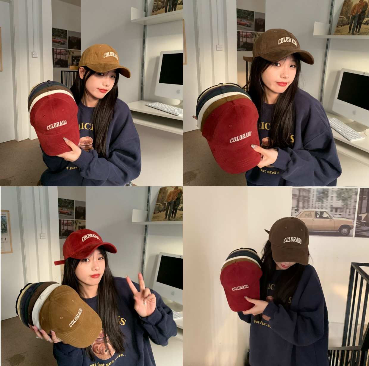 하이 퀄리티 샌딩 질감 소프트 탑 야구 모자 여자의 곡선 챙 모든 매치 간단한 자수 얼굴 보여주는 작은 모자 남자의 유행
