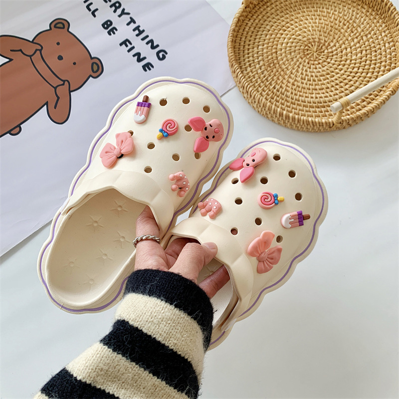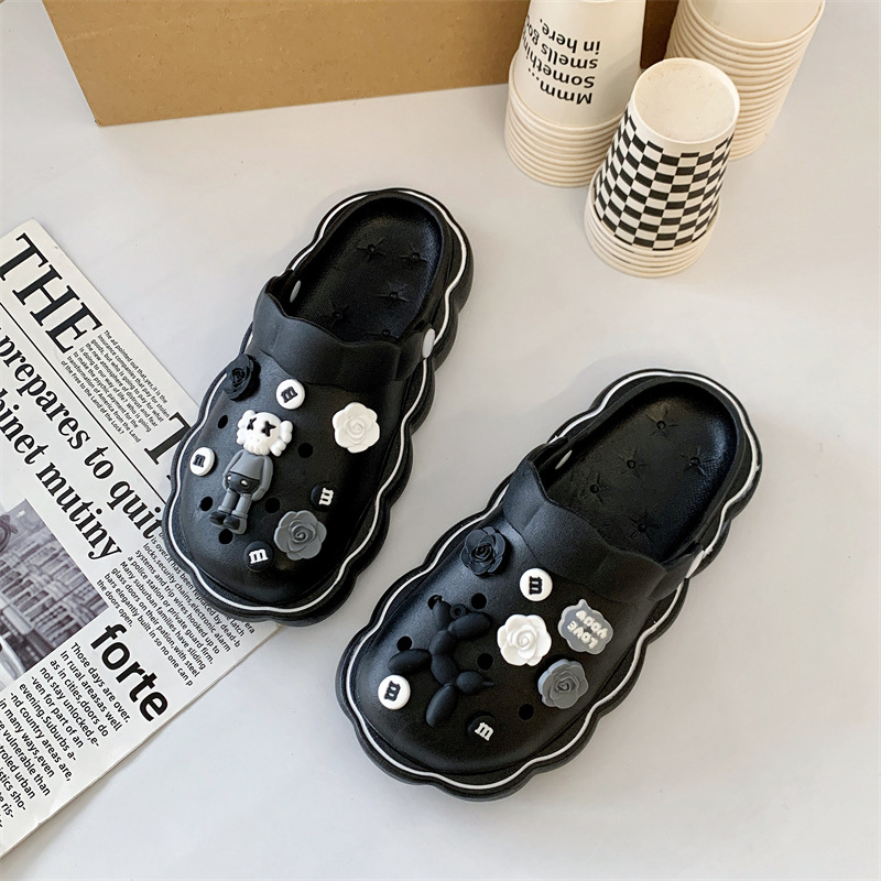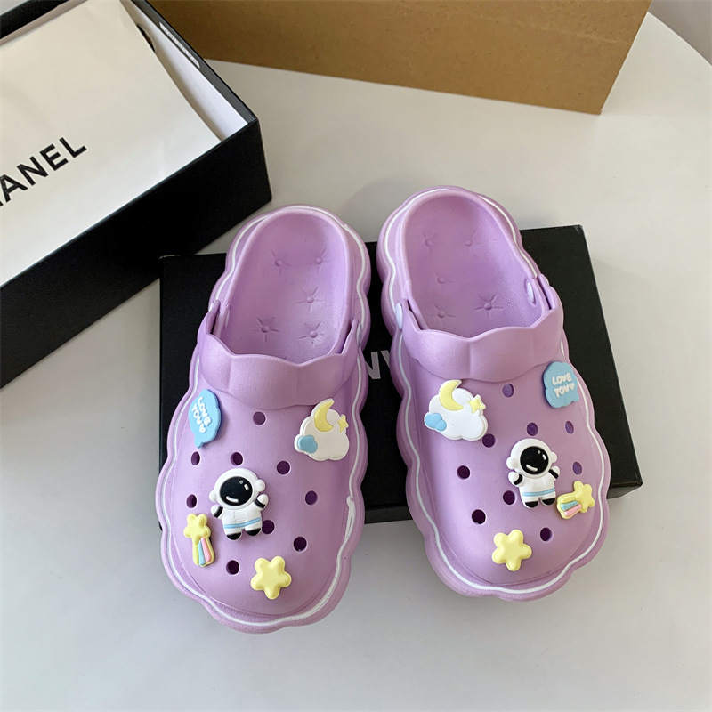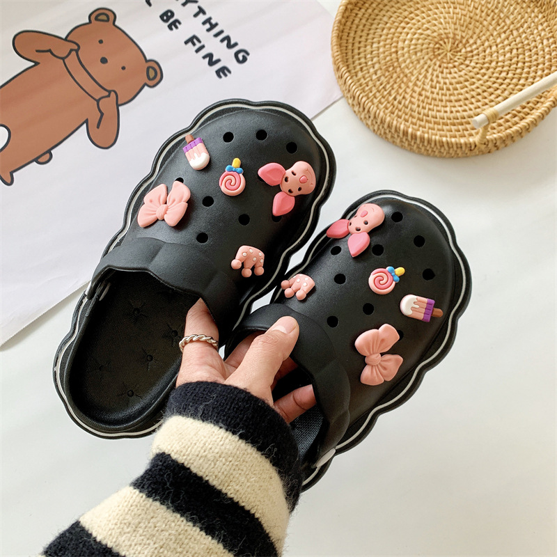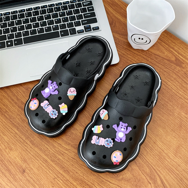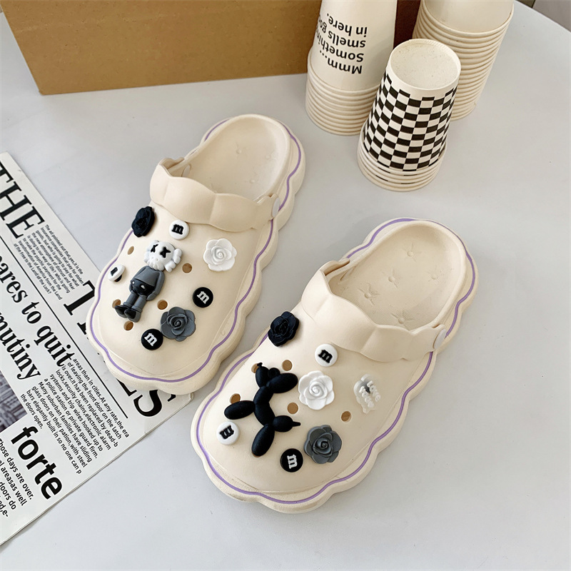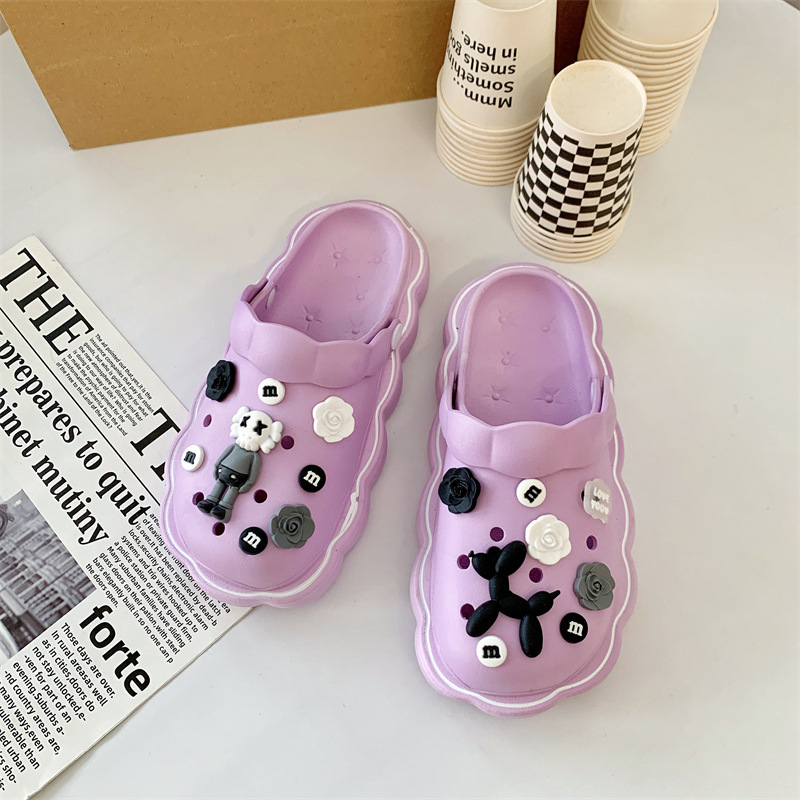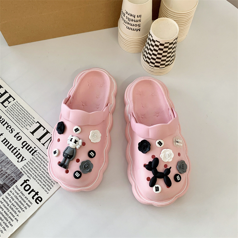 스톰프 느낌 두꺼운 밑창 구멍 신발 여성용 여름 유행 아웃웨어 DIY 비치 신발 샌들 PVC 부드러운 밑창 Baotou 반지지 슬리퍼