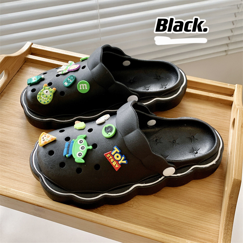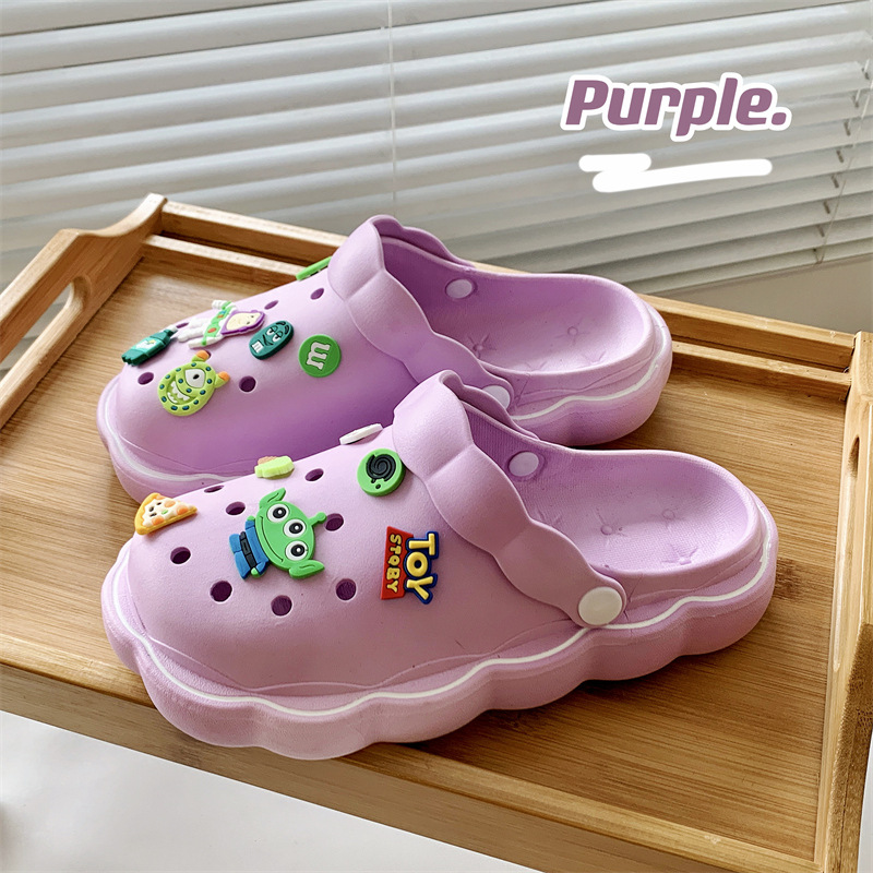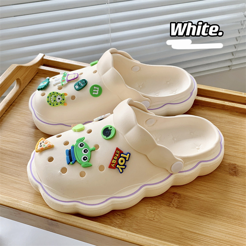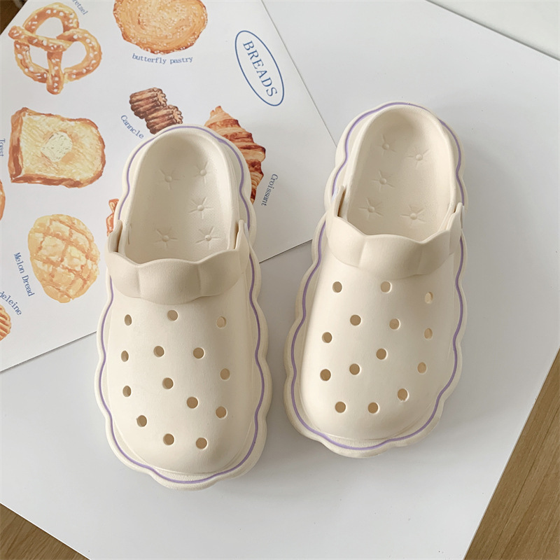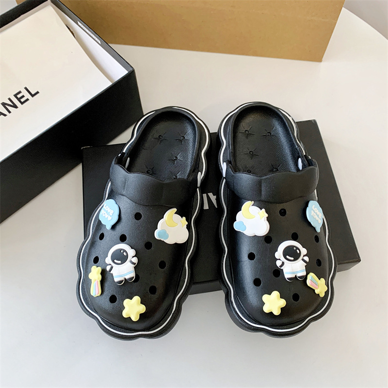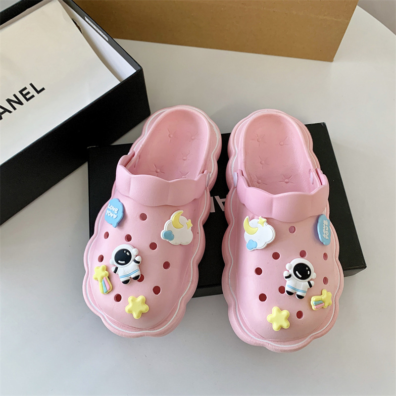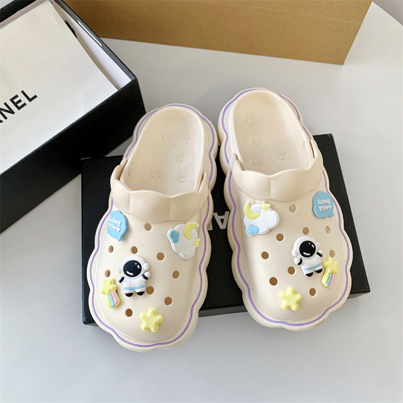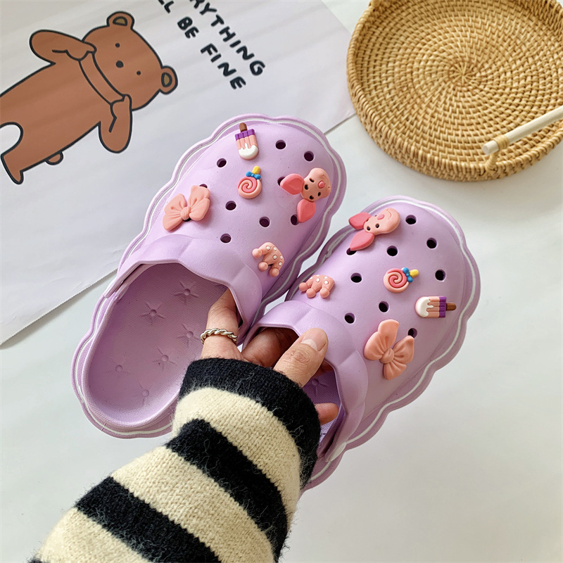 스톰프 느낌 두꺼운 밑창 구멍 신발 여성용 여름 유행 아웃웨어 DIY 비치 신발 샌들 PVC 부드러운 밑창 Baotou 반지지 슬리퍼