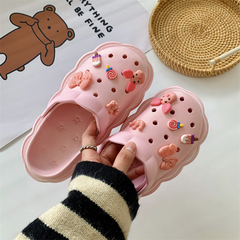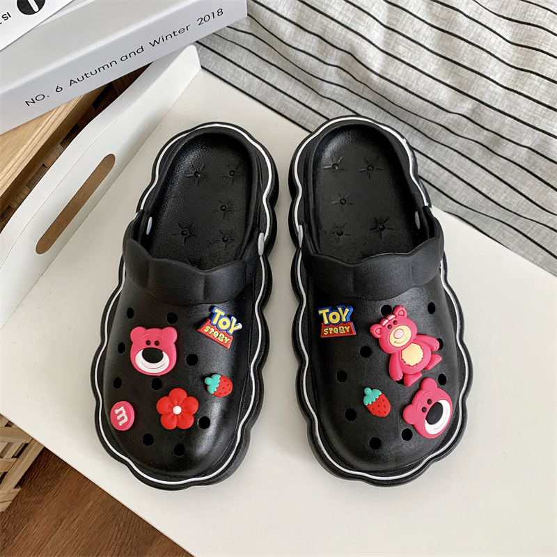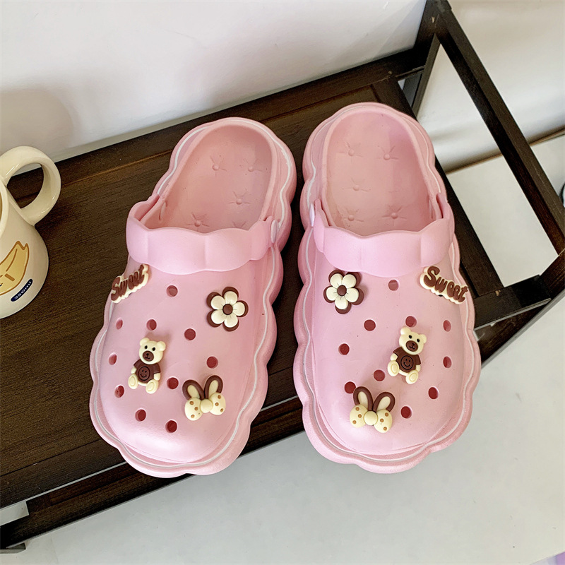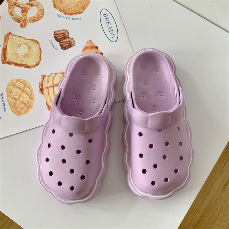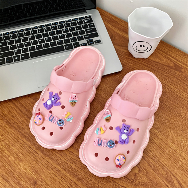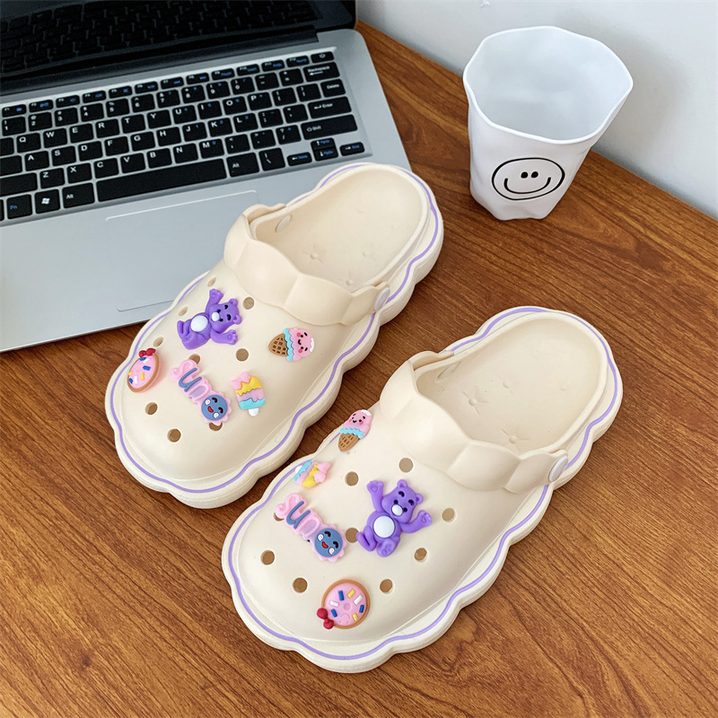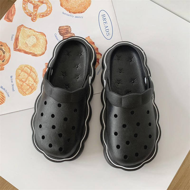 스톰프 느낌 두꺼운 밑창 구멍 신발 여성용 여름 유행 아웃웨어 DIY 비치 신발 샌들 PVC 부드러운 밑창 Baotou 반지지 슬리퍼스토어 가기