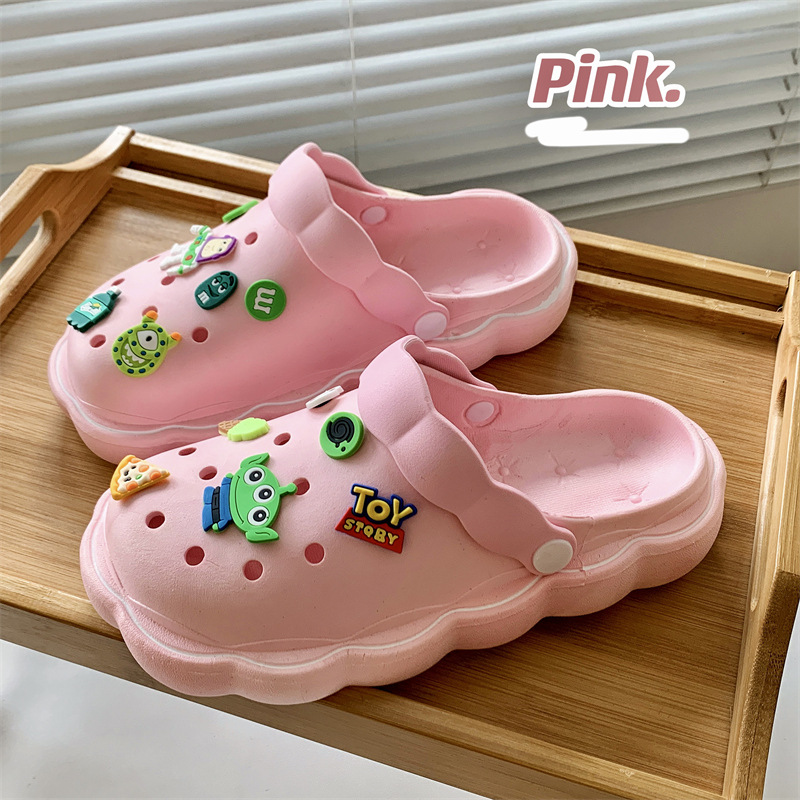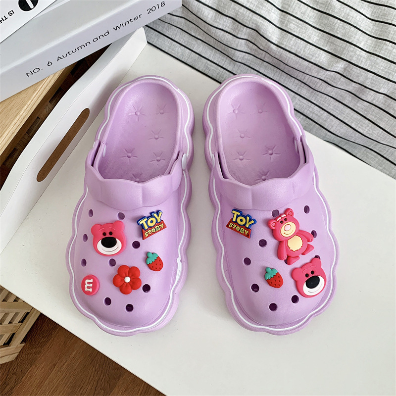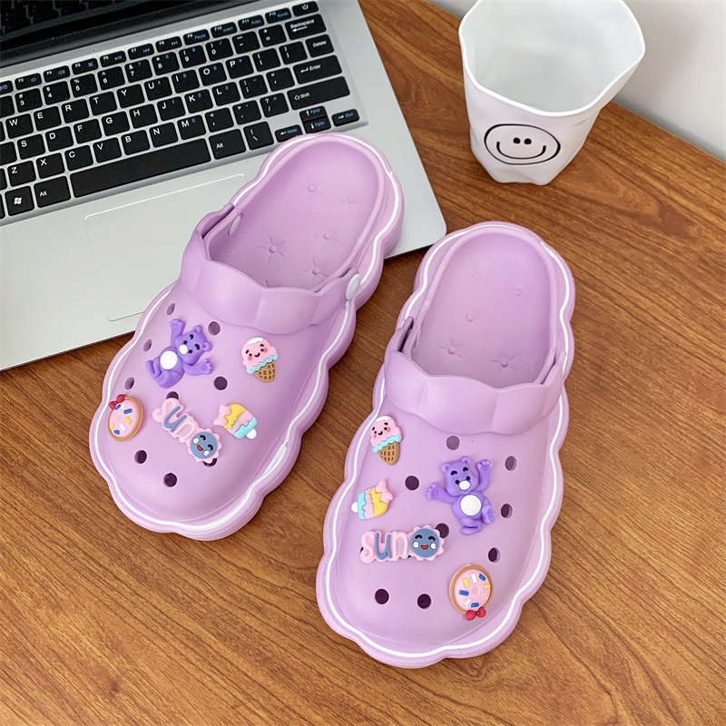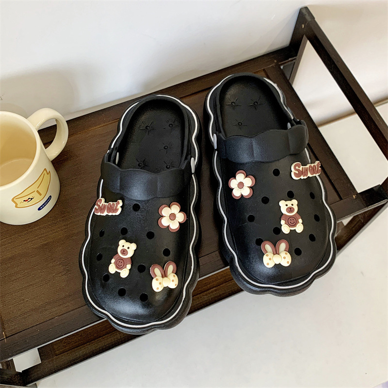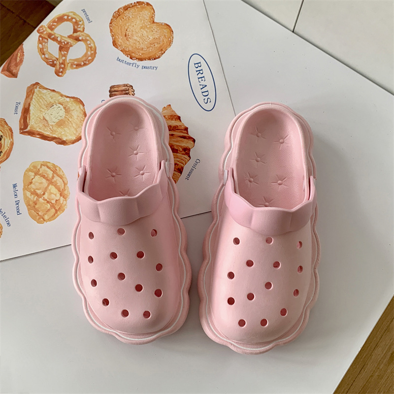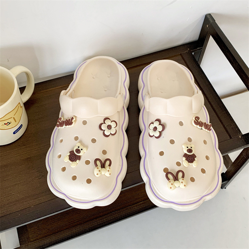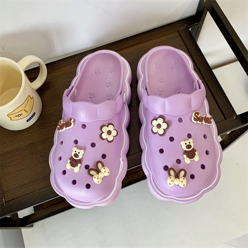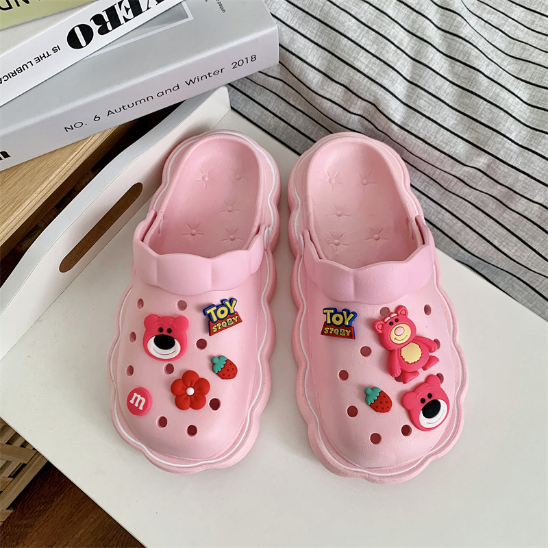 스톰프 느낌 두꺼운 밑창 구멍 신발 여성용 여름 유행 아웃웨어 DIY 비치 신발 샌들 PVC 부드러운 밑창 Baotou 반지지 슬리퍼스토어 가기