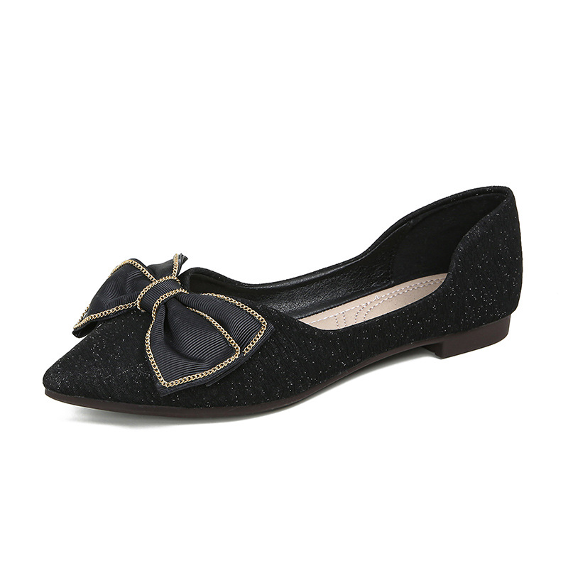 평평한 편안한 싱글 레이어 신발 여성의 봄 2024 새로운 뾰족한 활 블랙 올 매치 작업 무당 신발 대형 41-43스토어 가기